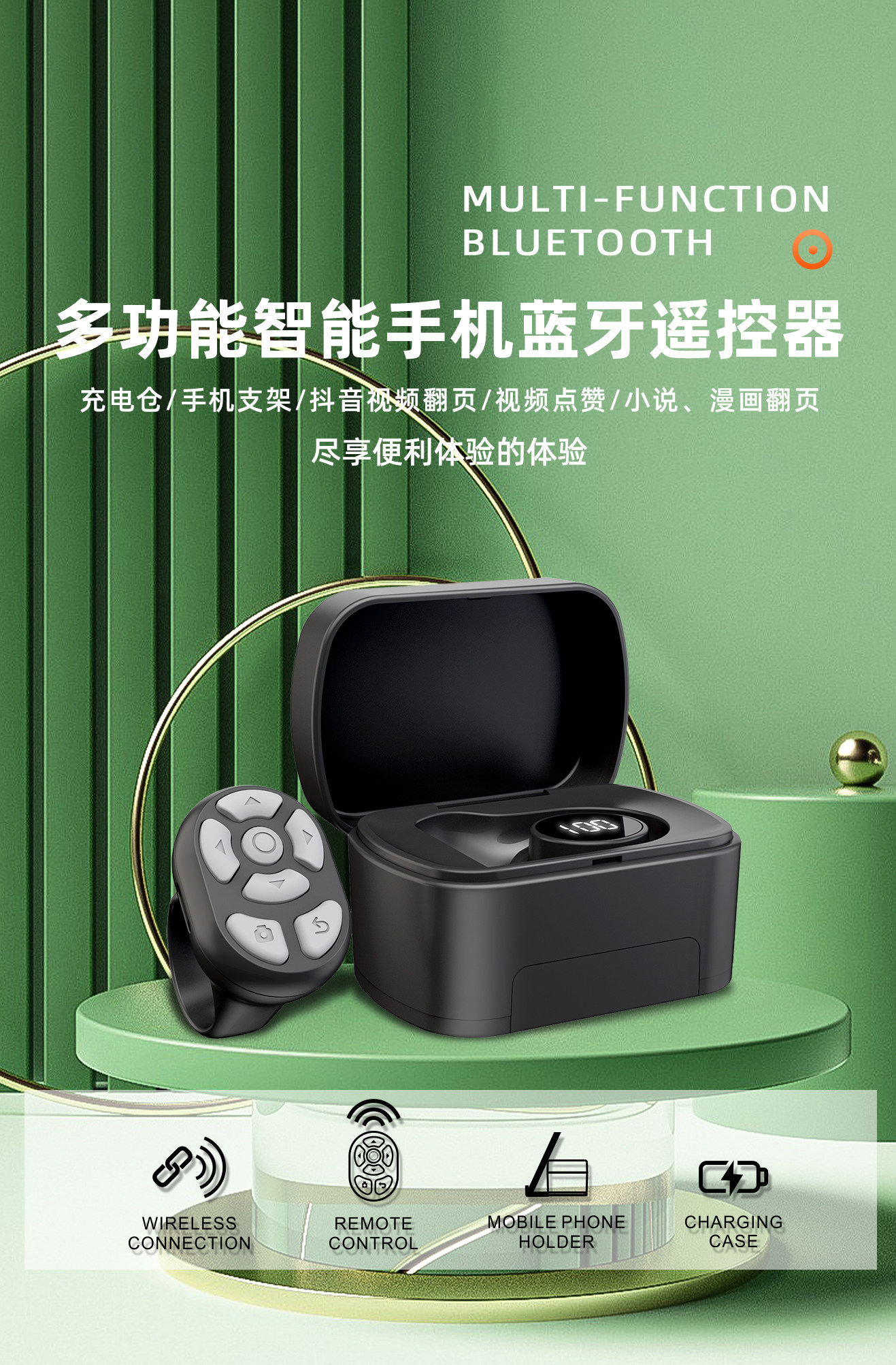 Кольцо с зарядкой, пульт, мобильный телефон, флип-книга, bluetooth