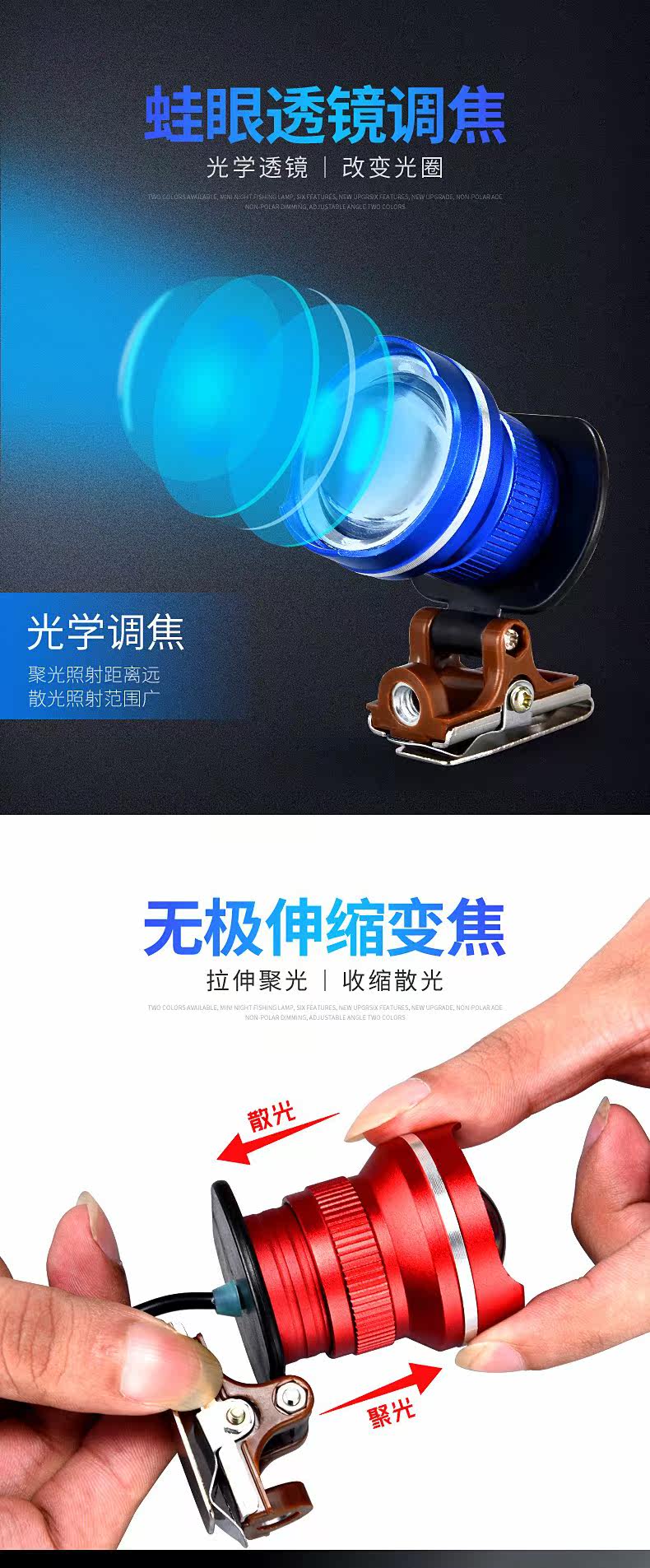 Анти -фокусные рыболовные огни синий свет голова желтый свет сильный свет Super Bright USB Внешний рыбацкий свет светлый свет рыбацкая коробка
