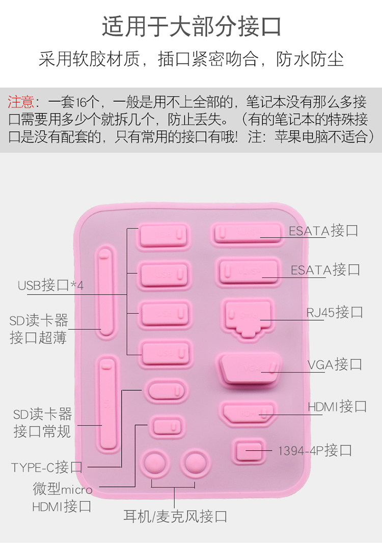 Ноутбук полный набор пылезащитных заглушек, 16 шт., порт USB + HDMI + сетевой кабель + наушники + SD-карта...пылезащитный чехол