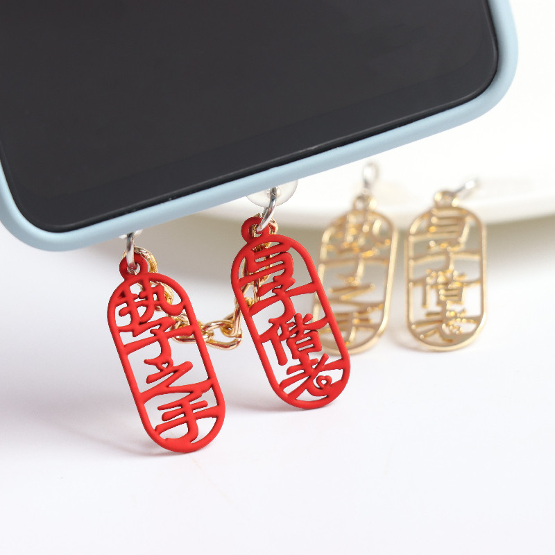 Рука любви к любви и старый мобильный телефон для наушников, профилактика пыли, зарядка порта, блокируя пари мужчин и девушек, висящих