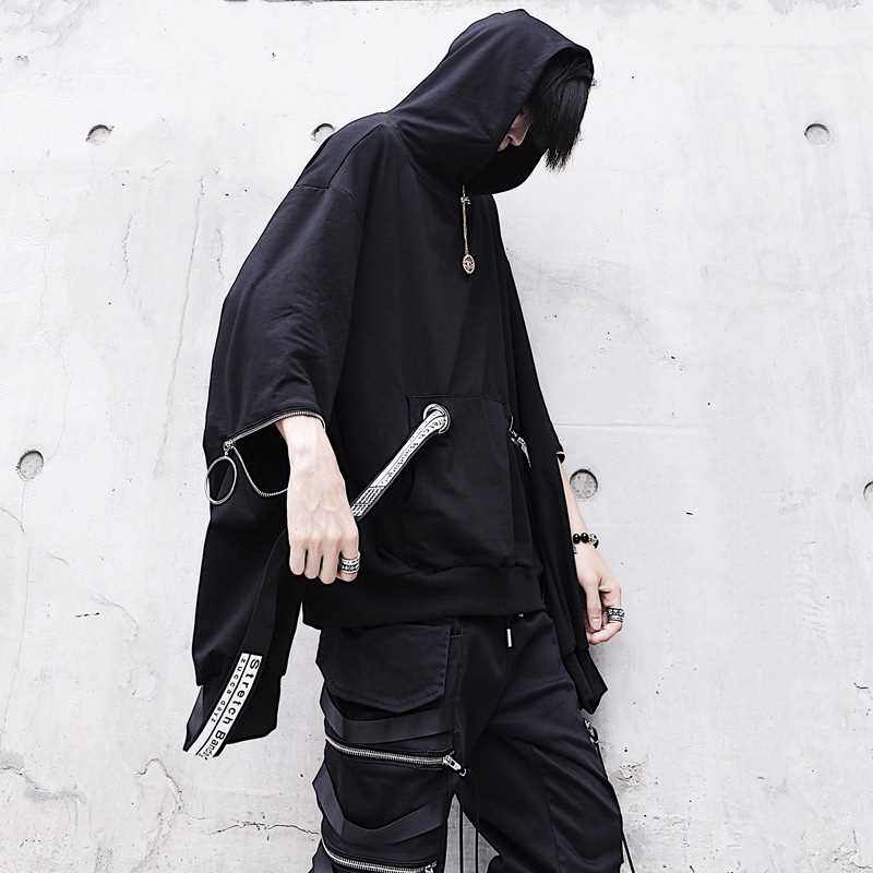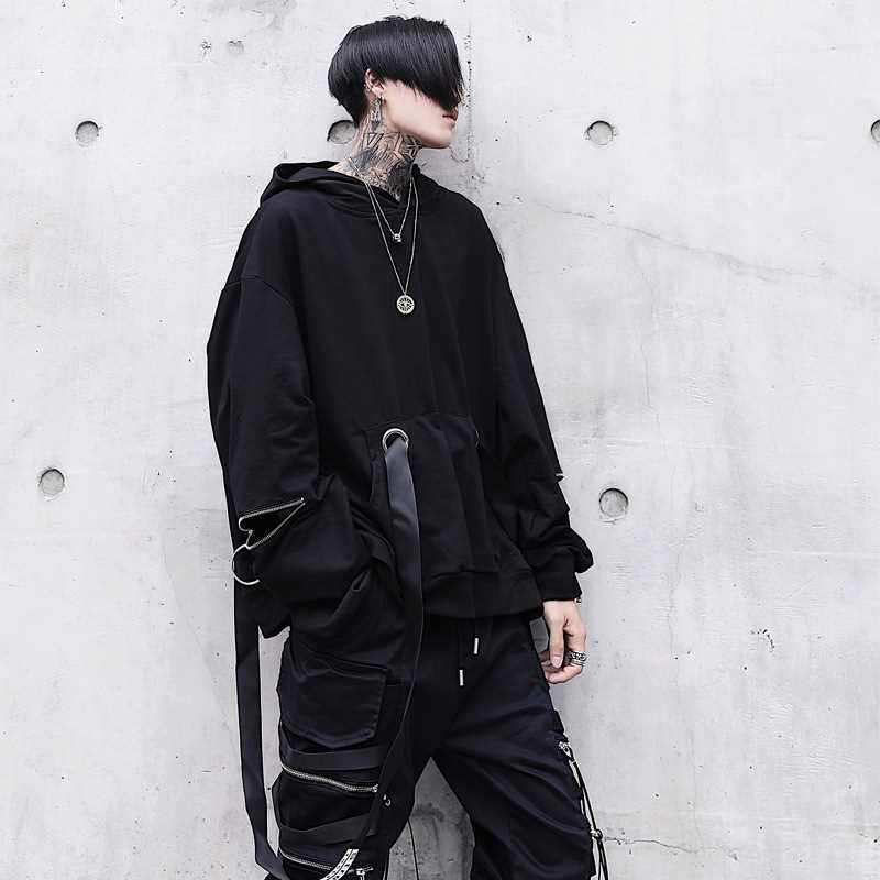 Эмо черная толстовка с капюшоном alt hood осенняя техническая одежда панк Go