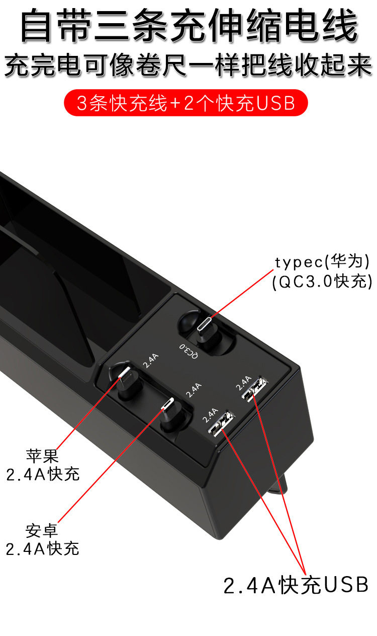 - 2 Кабельная модель быстрого заряда с моделью гарнитуры Bluetooth