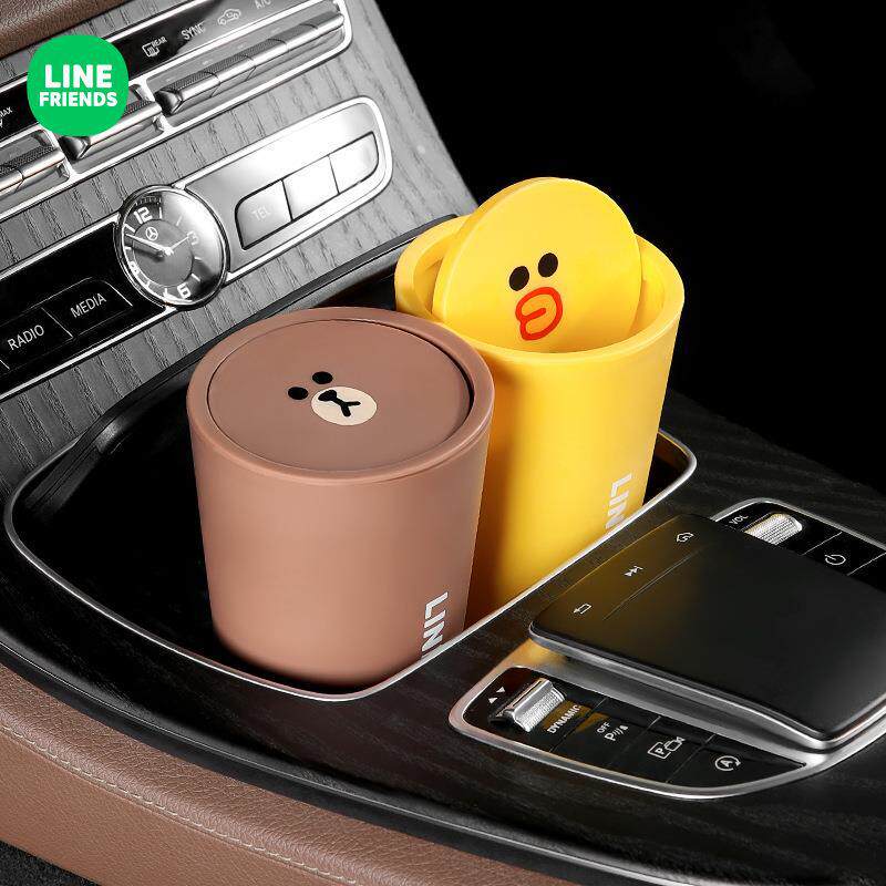 LineFriends милый будский медведь автомобильная мусорная банка мини -коробка для хранения водонепроницаемые мультфильмы банка