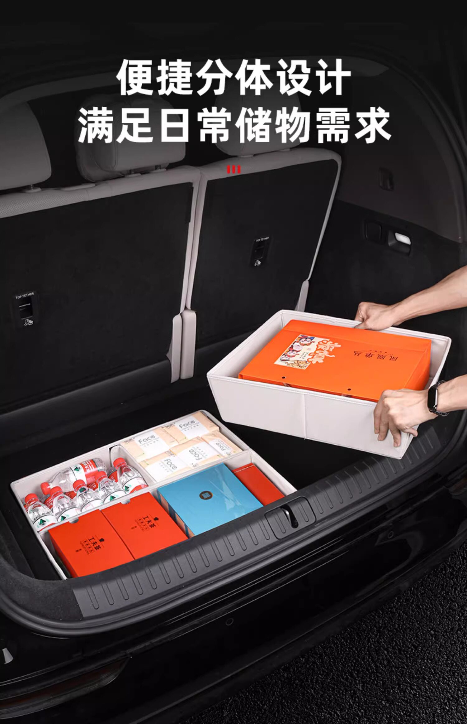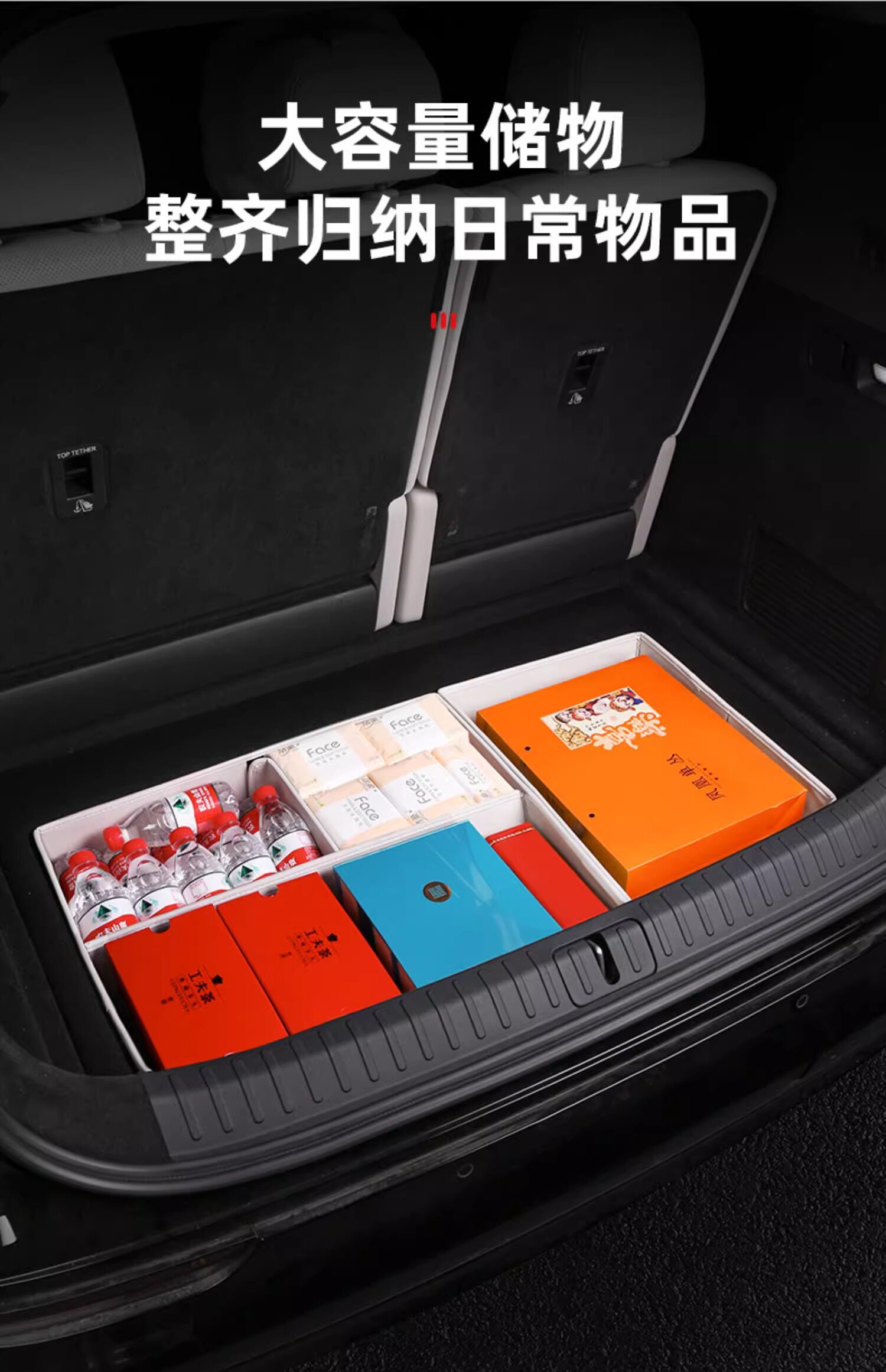 Идеальная мега -багажник, ящик для хранения автомобиля -Загруженная коробка для хвостовой коробки в разделе.