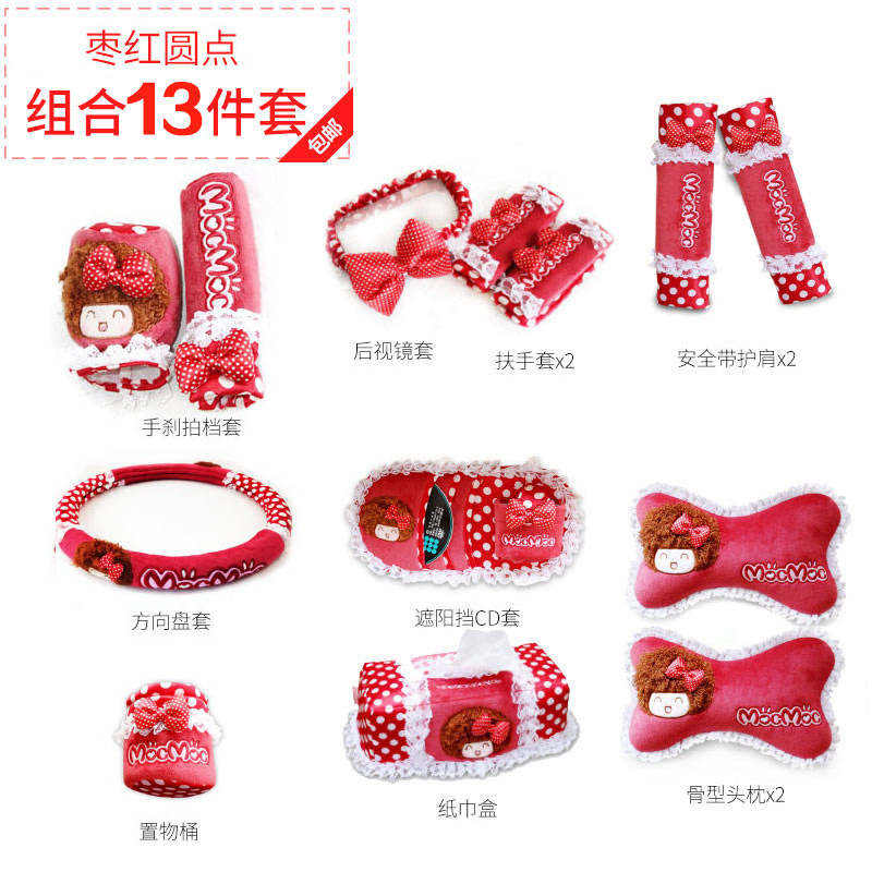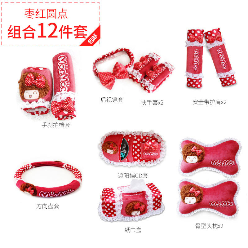 12 штук:оплетка руля1индивидуальный Подголовник2индивидуальный Ручной тормоз1Решение1индивидуальный Зеркальный рукав заднего вида1индивидуальный Подлокотник2индивидуальный Ленточный рукав2индивидуальный Солятву1индивидуальный коробка для салфеток1индивидуальный