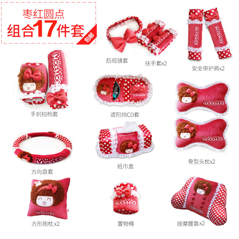 17 штук:оплетка руля1индивидуальный Подголовник2индивидуальный Трубка ствола1индивидуальный коробка для салфеток1индивидуальный Солятву1индивидуальный Ручной тормоз1Решение1индивидуальный Зеркальный рукав заднего вида1индивидуальный Подлокотник2индивидуальный Ленточный рукав2индивидуальный Поясничный2индивидуальный Подушка2индивидуальный