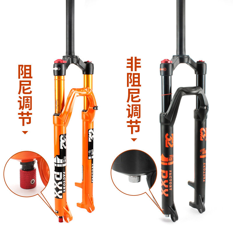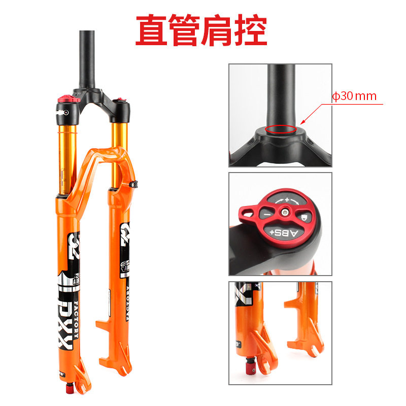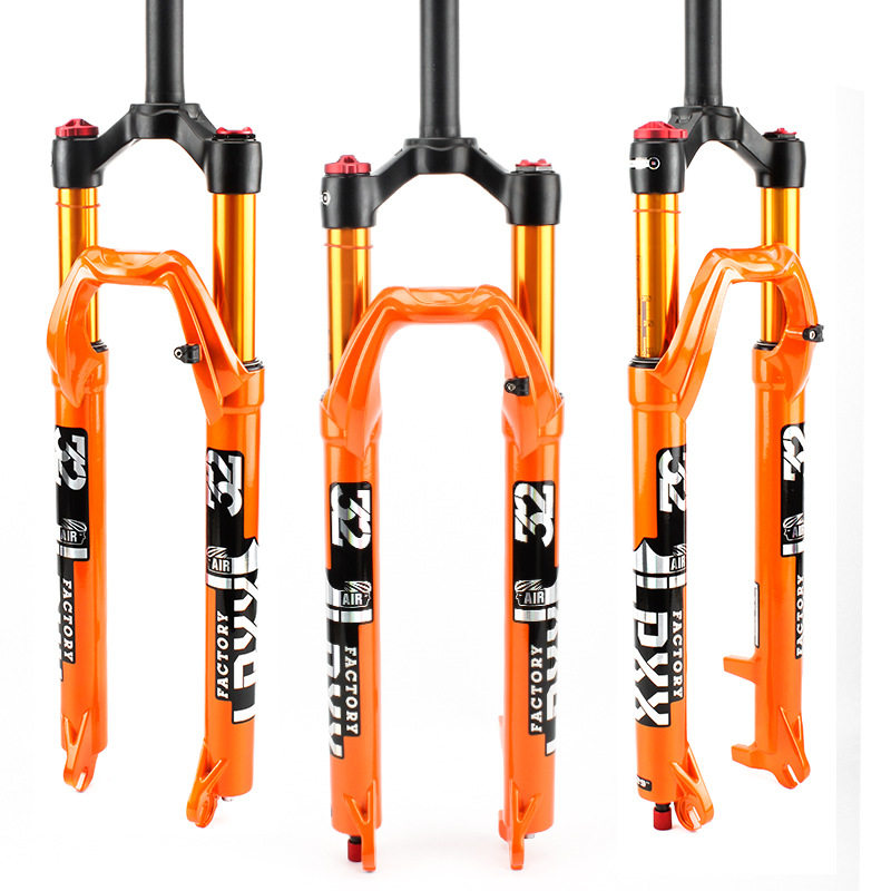 Горный велосипед, оранжевая велосипедная вилка, амортизация