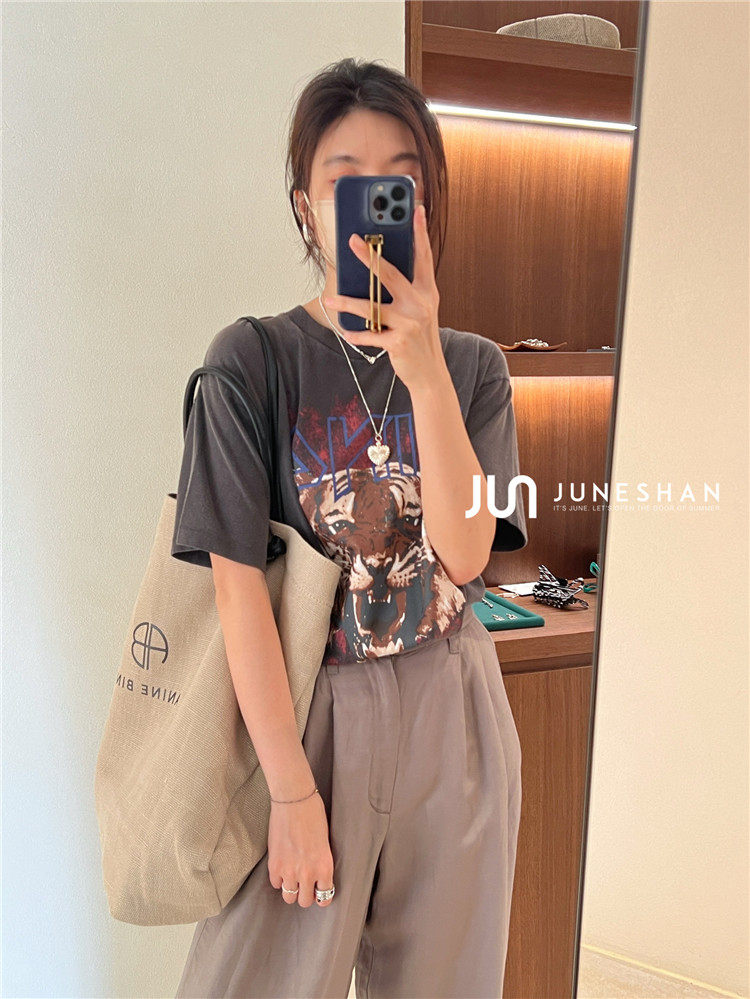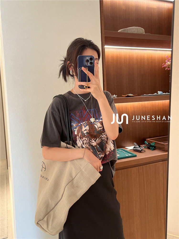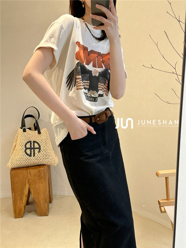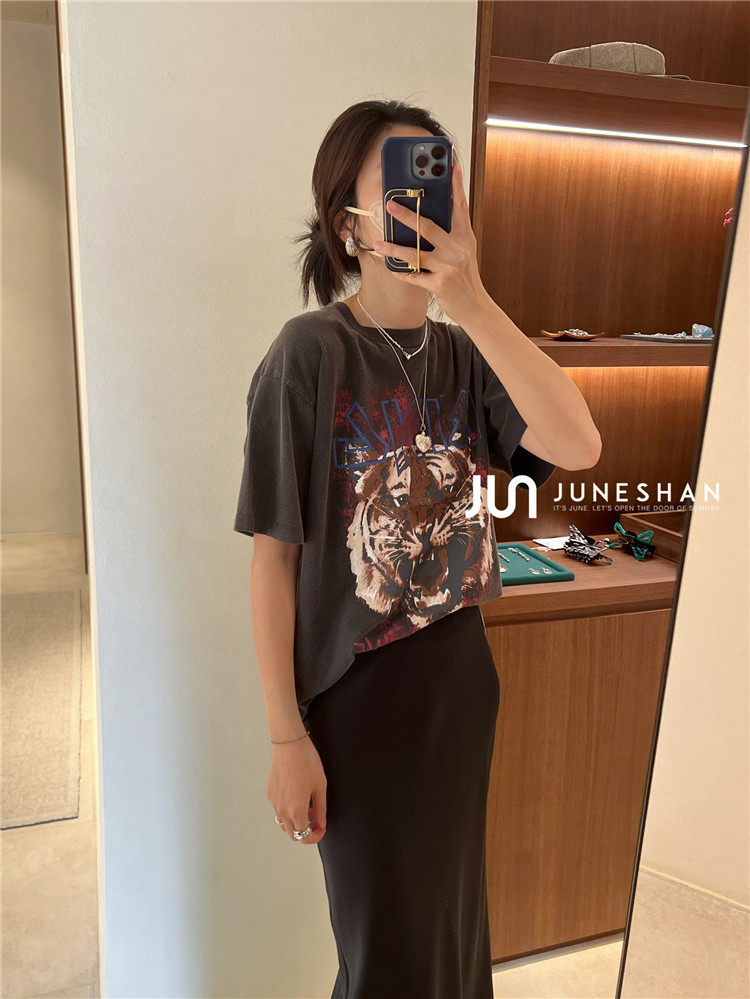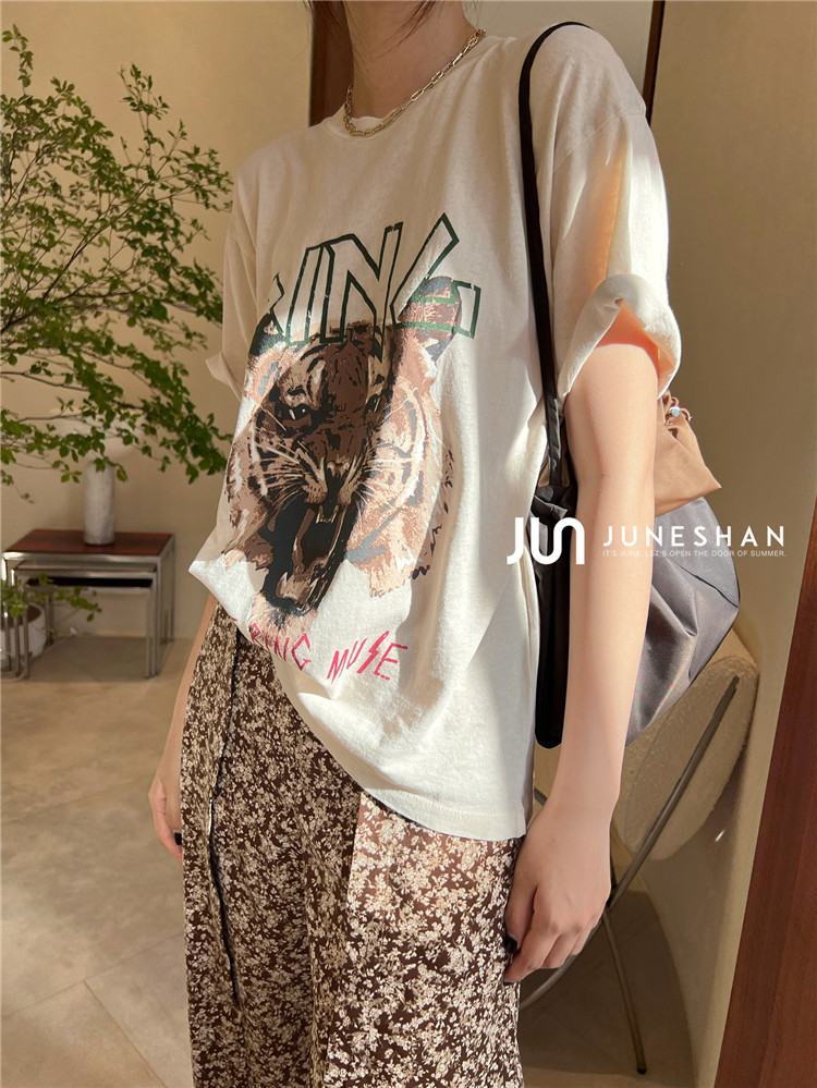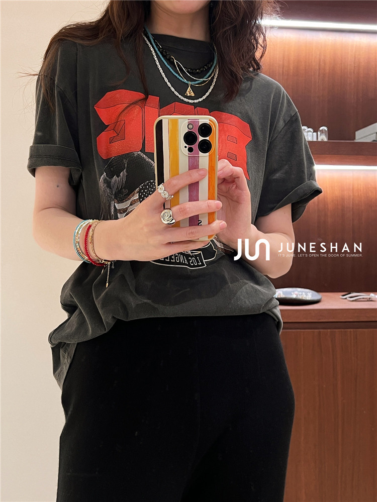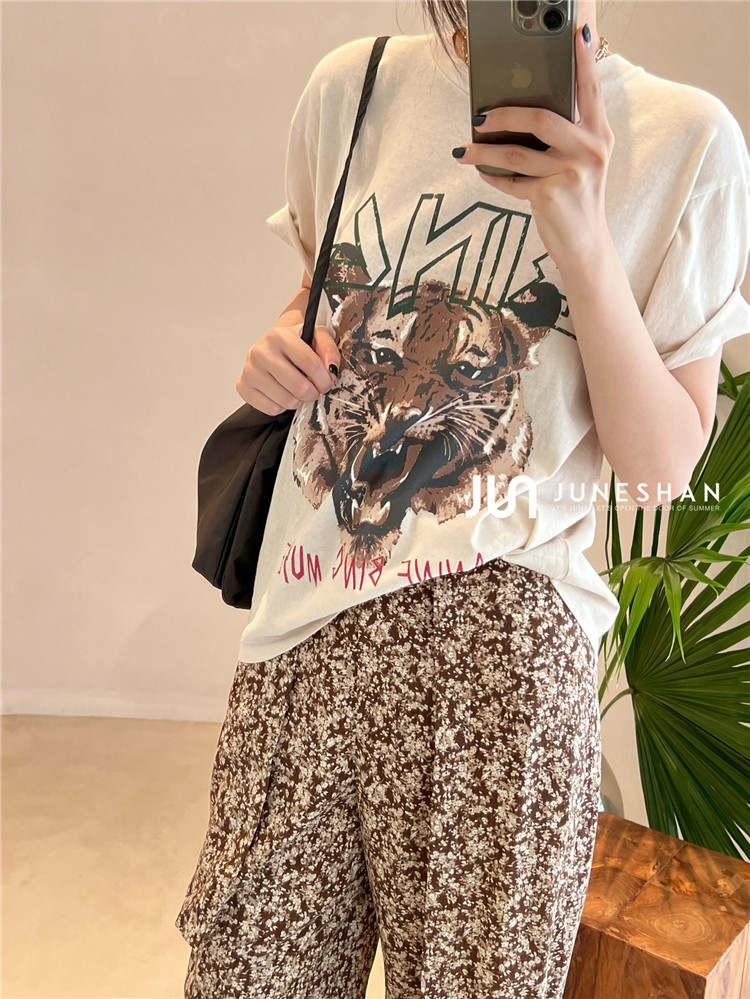 Самоал -сингл -летний солнцестояние джунишн Анин Бинг Классический узор Органический хлопок с коротким -косой футболкой