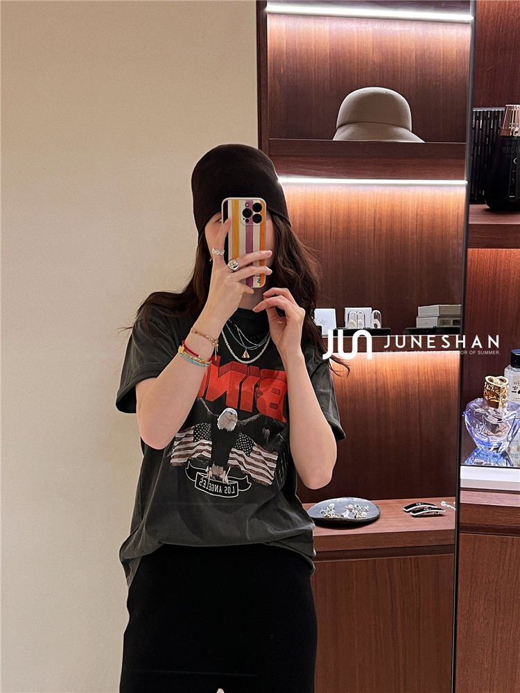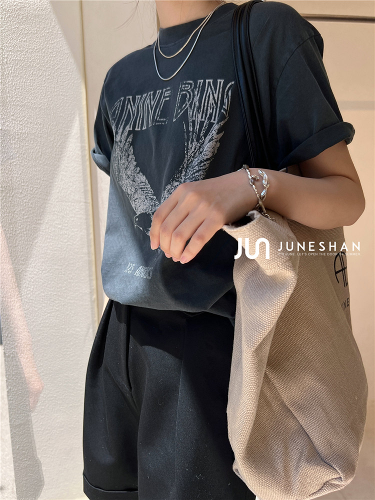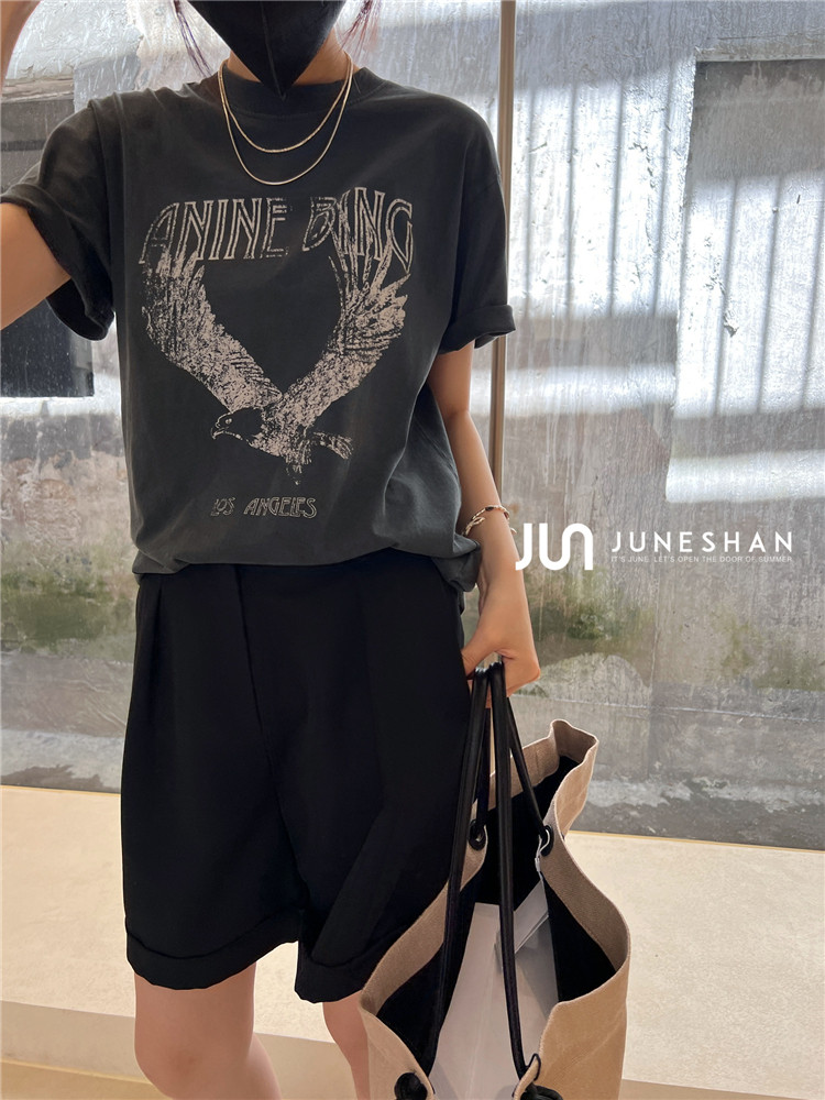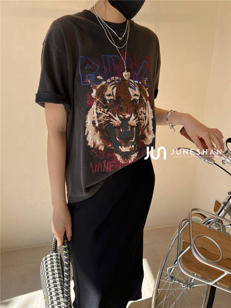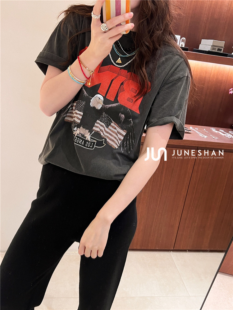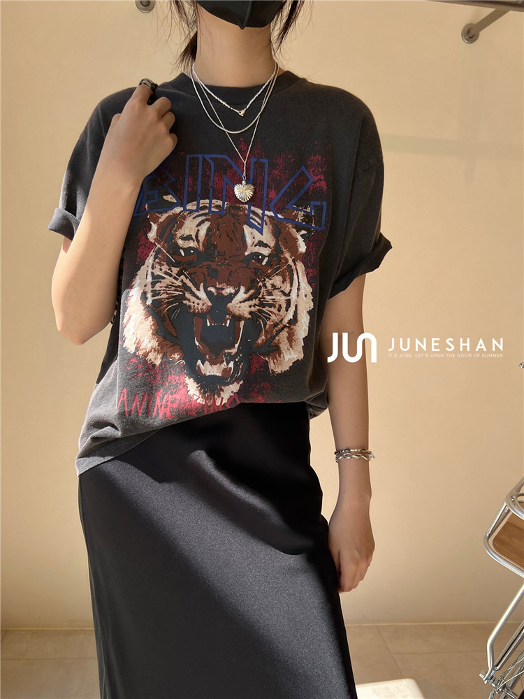 Самоал -сингл -летний солнцестояние джунишн Анин Бинг Классический узор Органический хлопок с коротким -косой футболкой