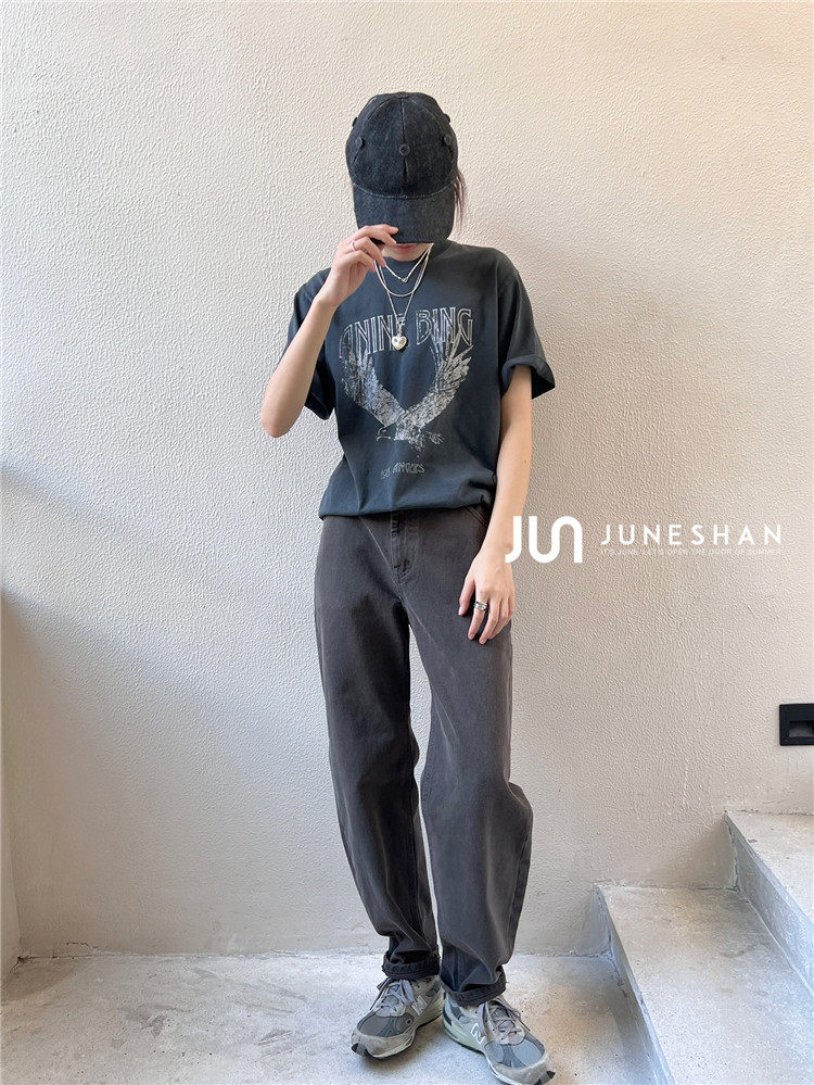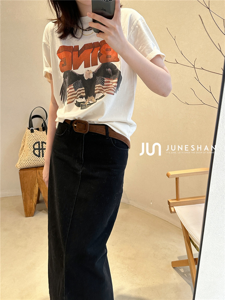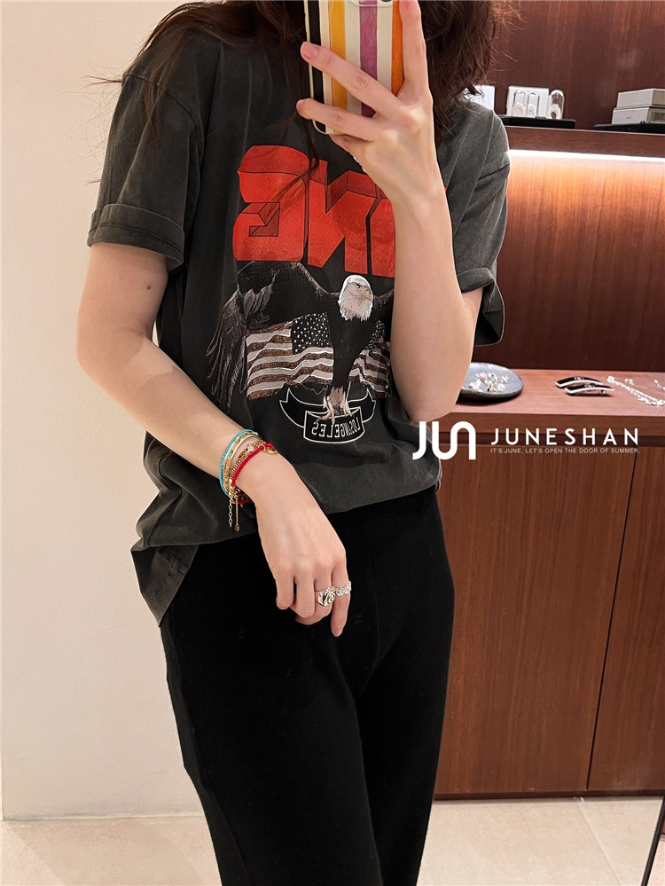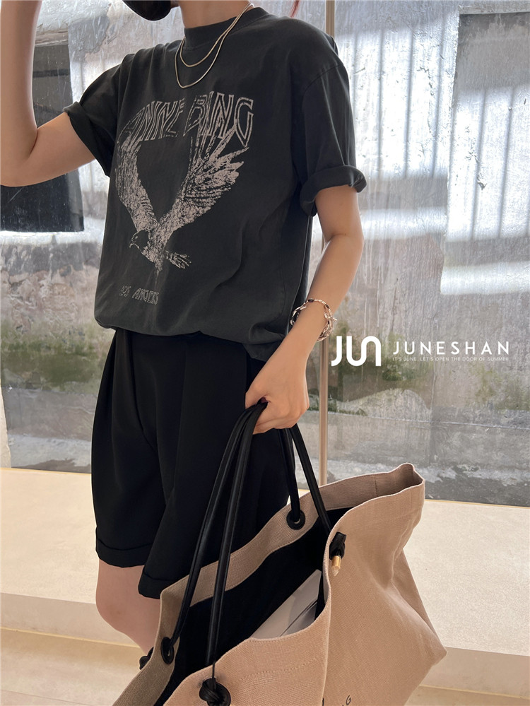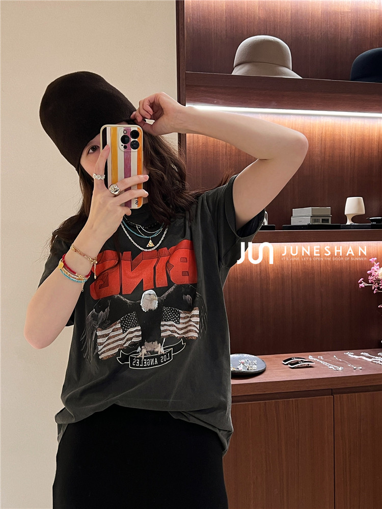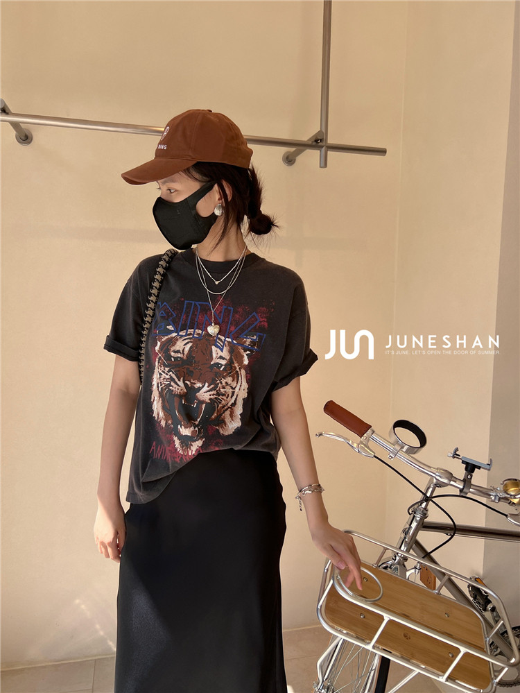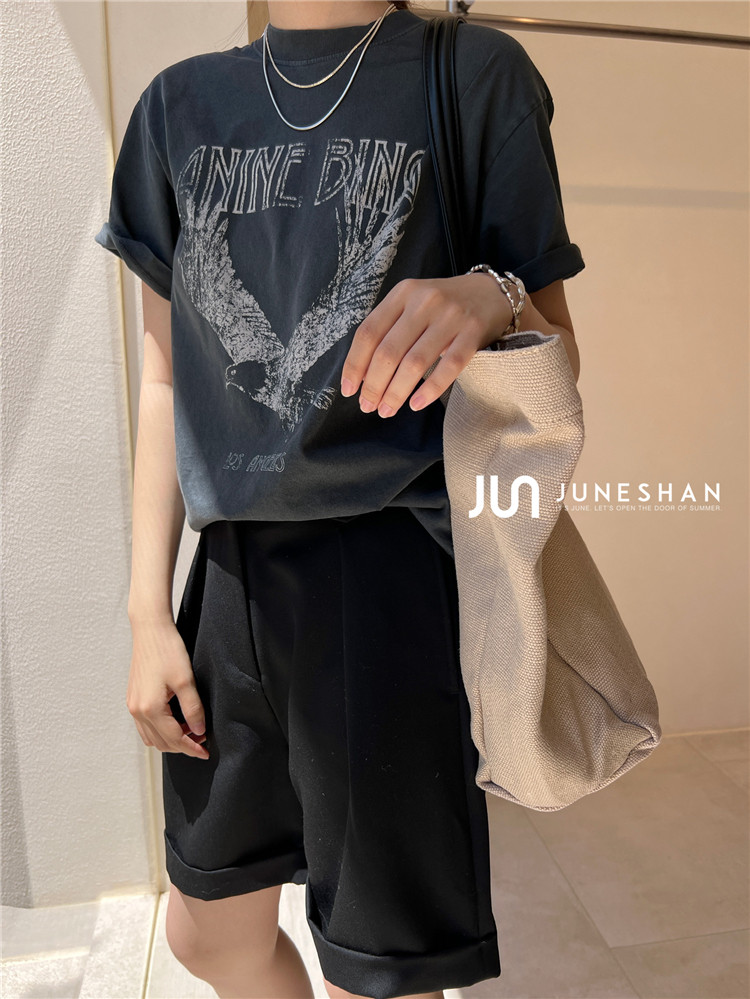 Самоал -сингл -летний солнцестояние джунишн Анин Бинг Классический узор Органический хлопок с коротким -косой футболкой