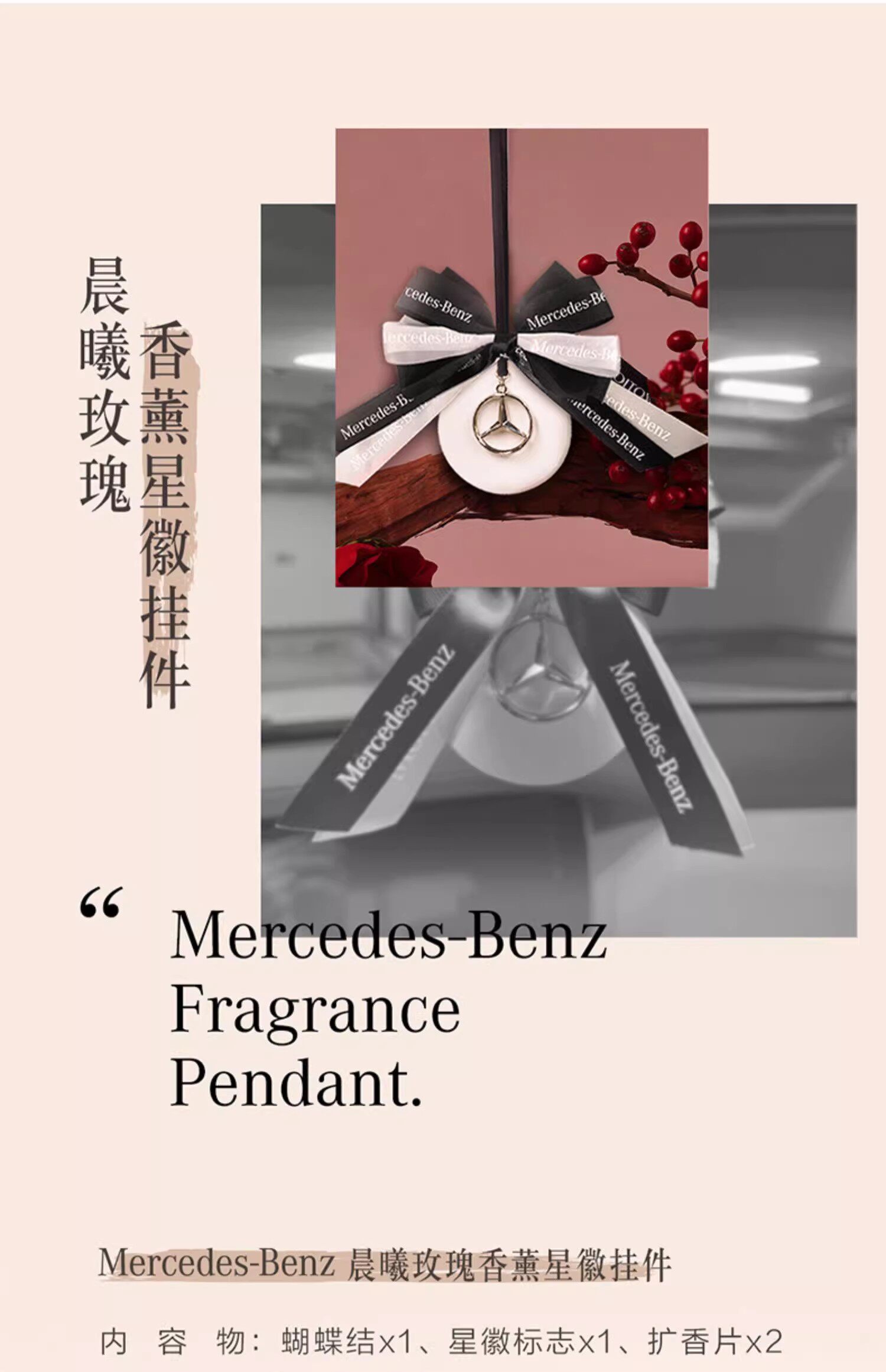 Подходит для Mercedes-Benz Dawn Rose Star, эмблема, автомобильная подвеска для ароматерапии, автомобильная подвеска, автомобильные принадлежности, украшение с бантом