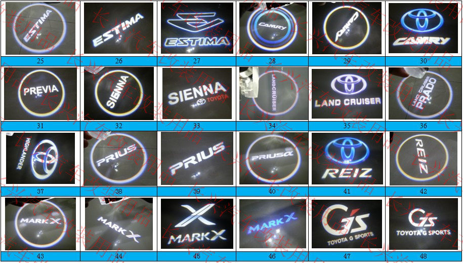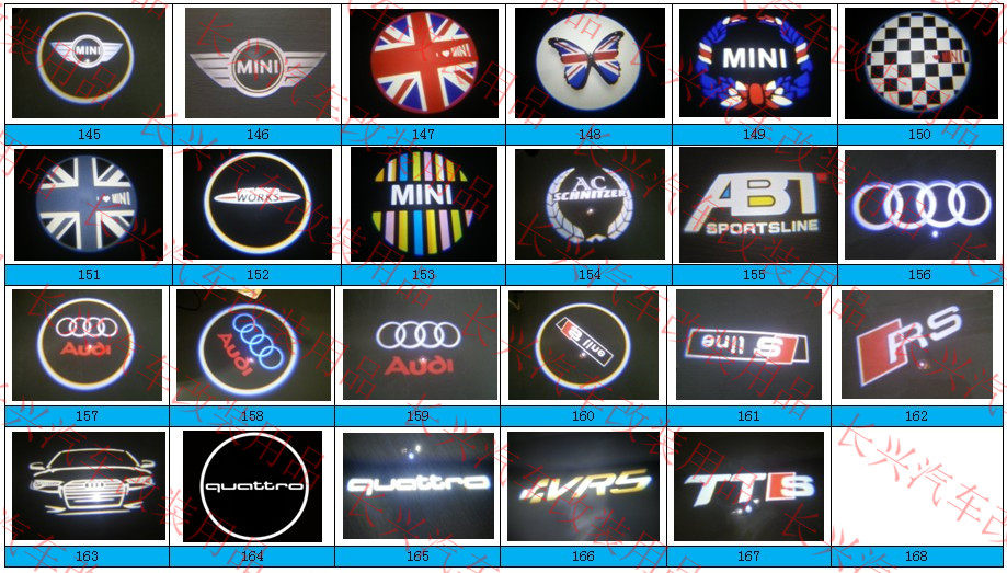 1: Специальная светодиодная модификация дверей автомобиля и проекционные этикетки для более чем 100 специальных предложений по модификации для выбора, подходящие для большинства специальных модификационных дверей, специфичной для модификации на рынке.