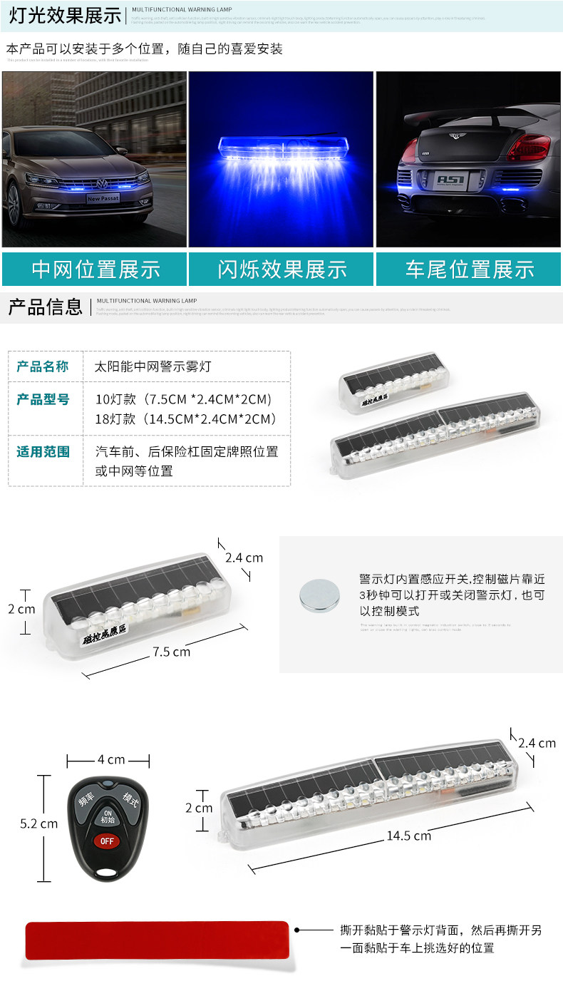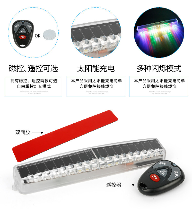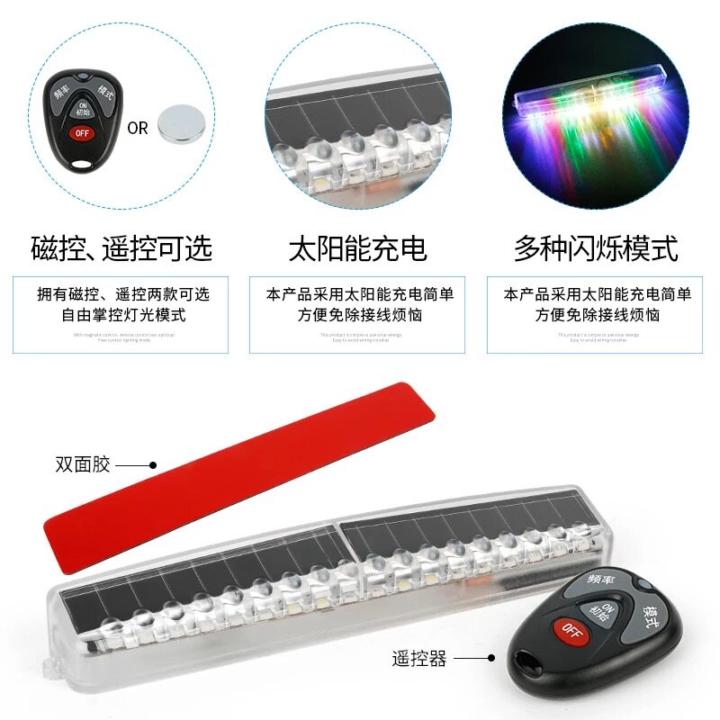 Автомобильная анти -рельсовая лампа солнечная анти -коллизация предупреждение во время сетчатой коробки без проводки грузовые мотоциклевые светодиоды светодиод