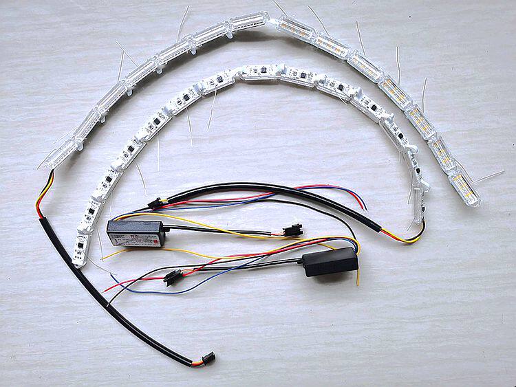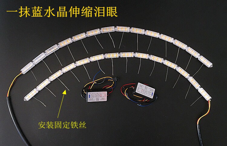 Прикосновение синего светодиодного светодиодного светодиода подчеркивает светлый свет бровей, текущий к лошади, бегущий свет, слезы хрустальные слезы