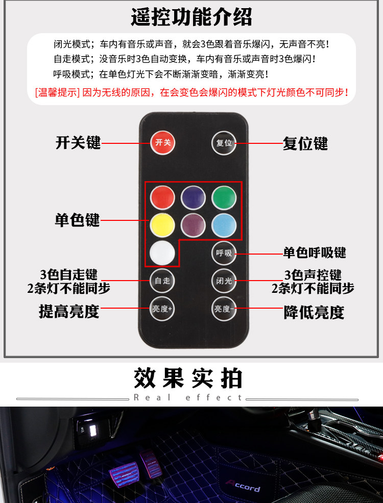 Беспроводная атмосфера легкий автомобиль внутри проводки внутренней части стопы