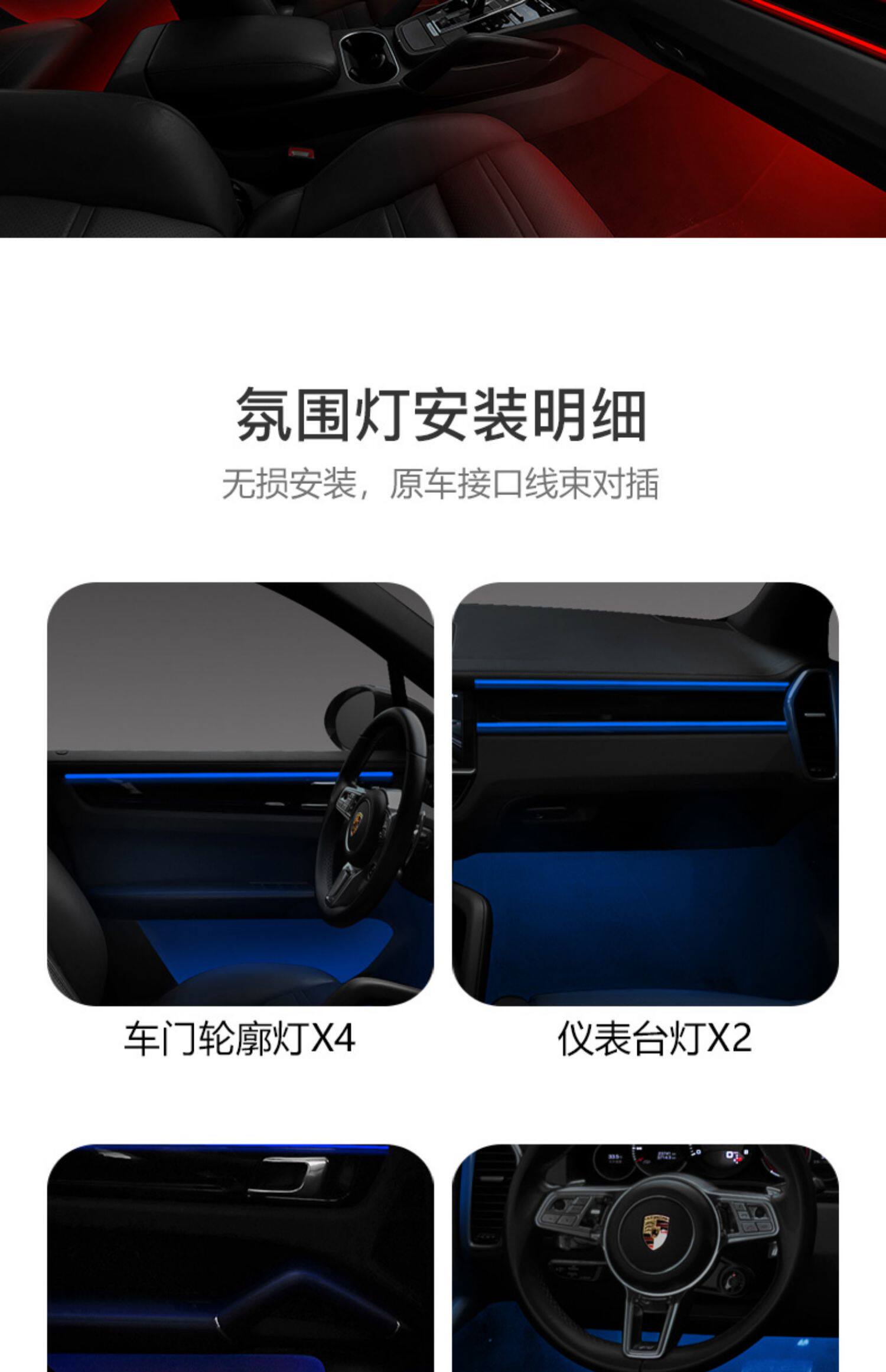 Подходит для внешнего освещения Porsche Macan Panamera 718 Cayenne, модифицированного салона автомобиля, светодиодной подсветки звукового сигнала