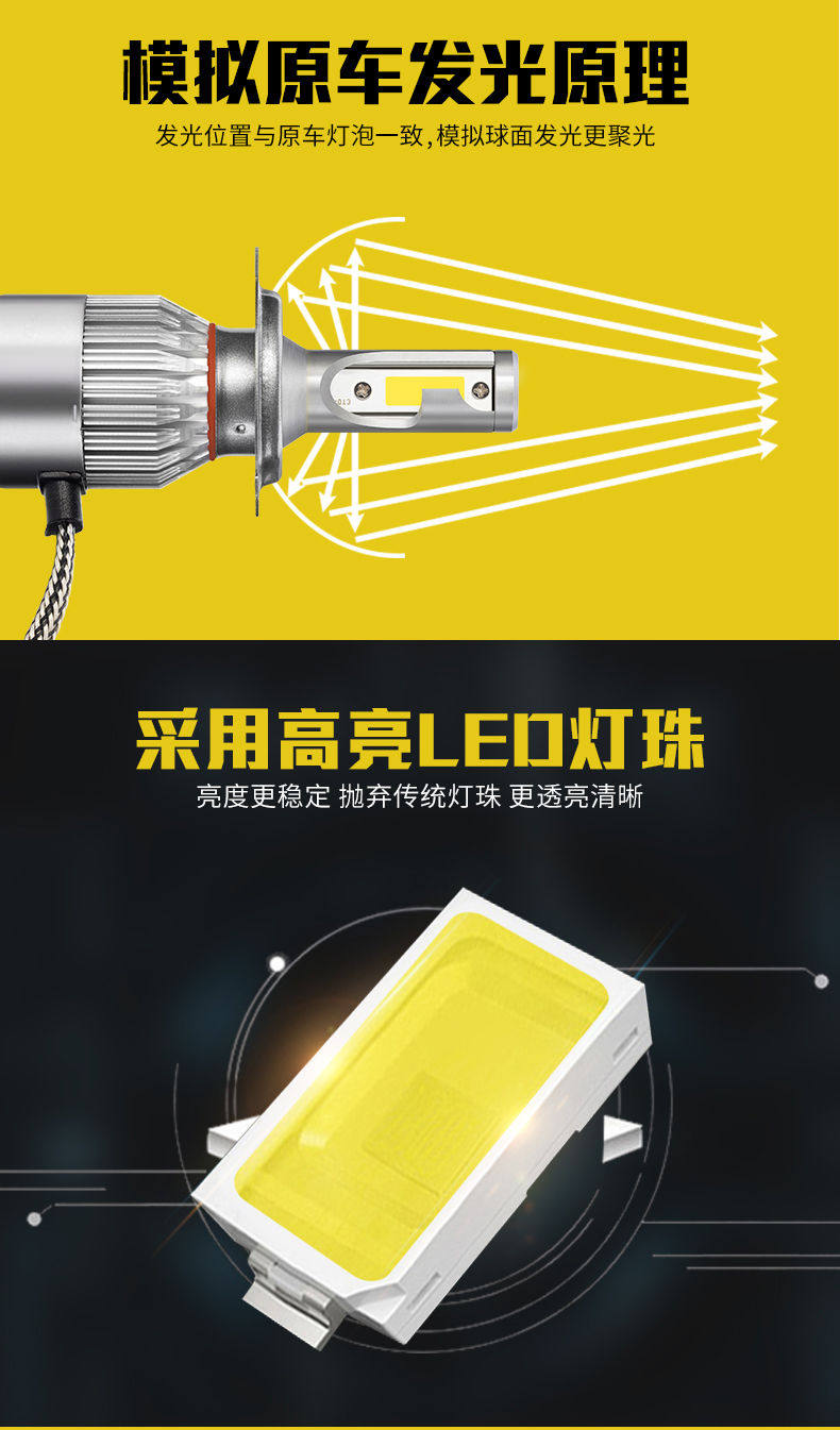 Сильная световая автомобильная светодиодная модификация модификации Big Light Super яркие двигатели H1H7H11H4 Far Type 9005 Освещение 12 В