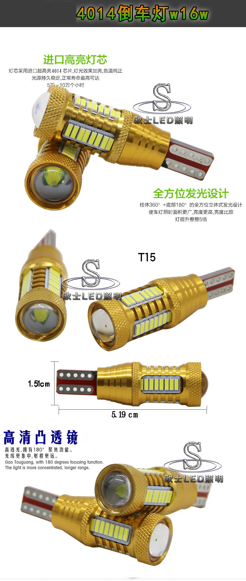 Фонари заднего хода: сверхяркие фонари заднего хода.4014 фитиль.【модель t15】