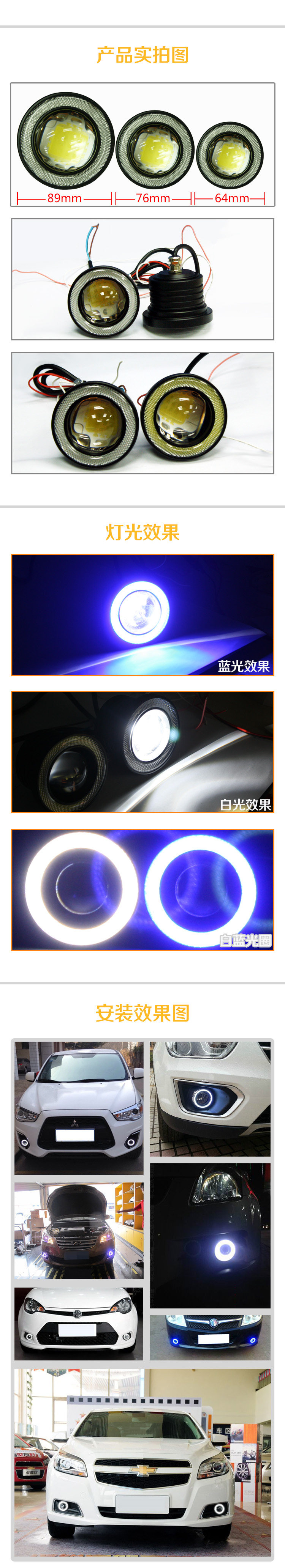 - Белый свет с ледяным синим кругом 2,5 дюйма/одна пара 2
