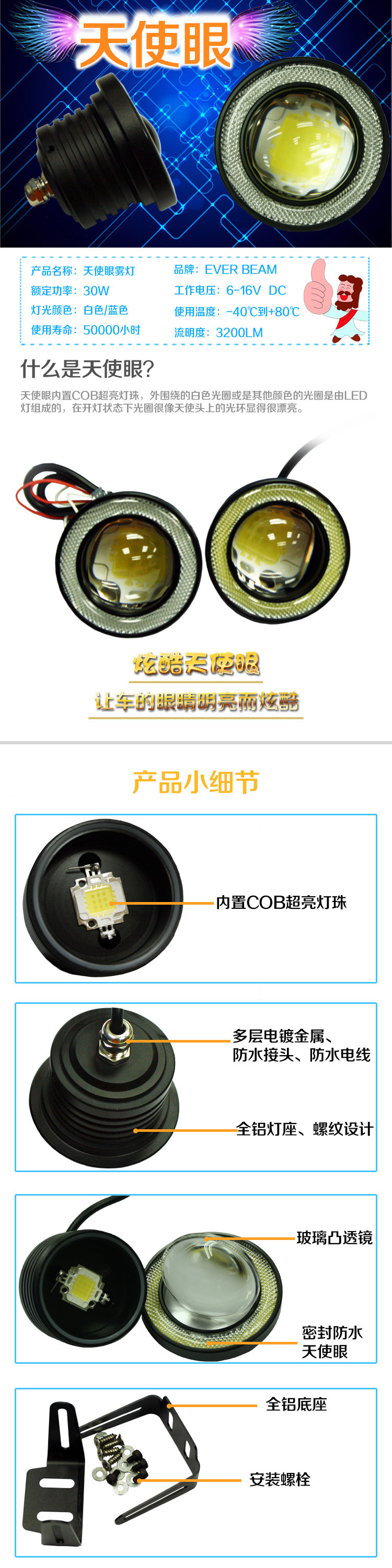 - Белый свет с синим кругом 3 дюйма/одна пара 2