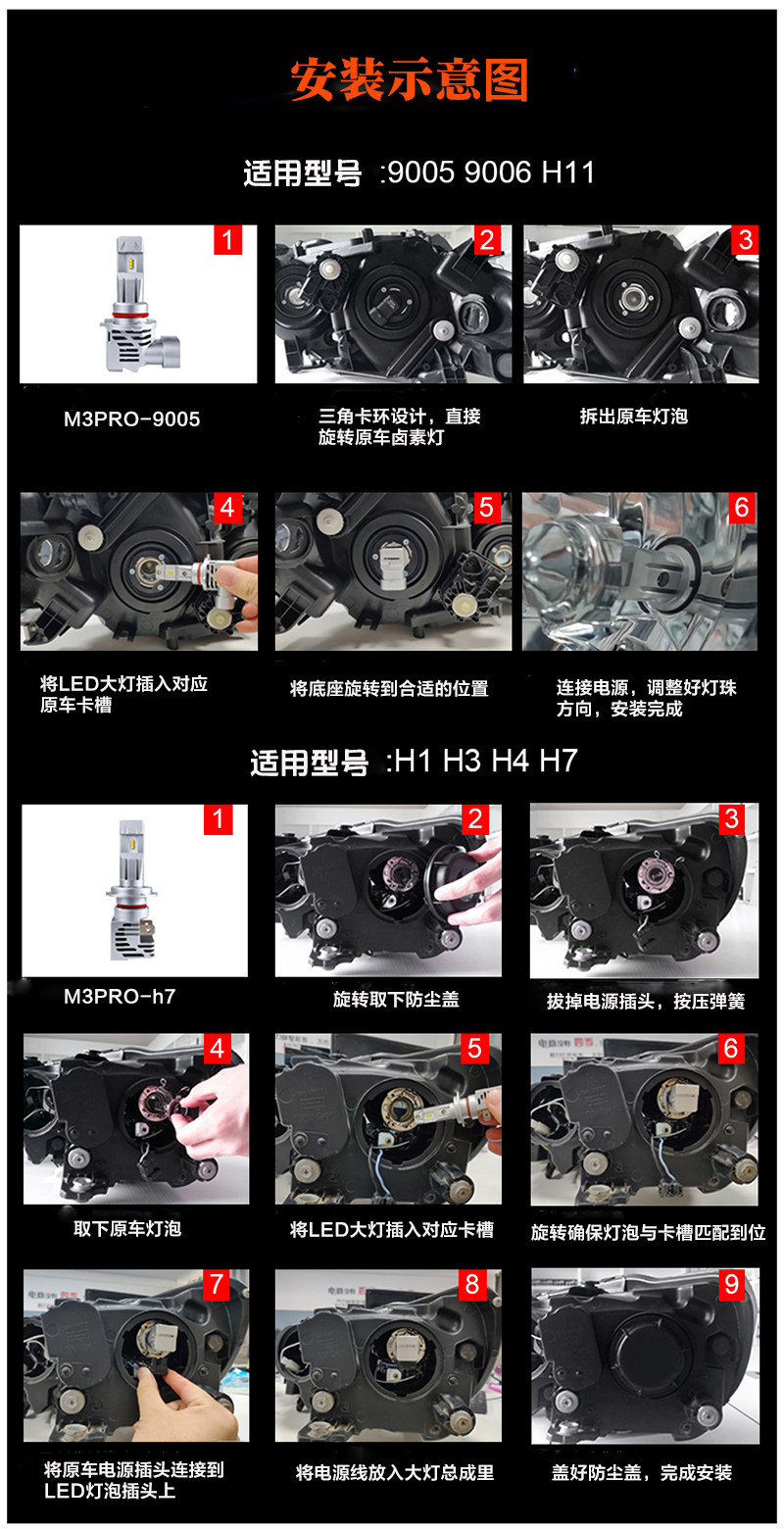 Автомобильная светодиодная лампочка Far 9005 Super Bright H11 Модификация низкой луча H4 Интегрированный беспроводной светлый свет 9006 FOG Light H8H9