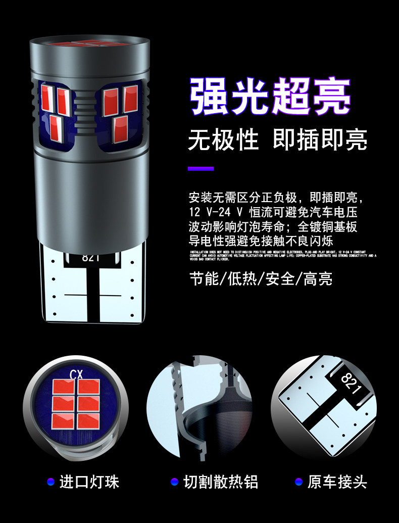 Декодирование автомобиля показывает широкую модификацию света T10 Высокие светлые пузырьковые пузырьковые супербарные линзы ежедневно вождение светодиодное светодиодное светодиод