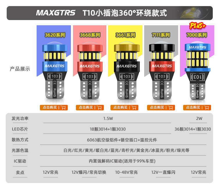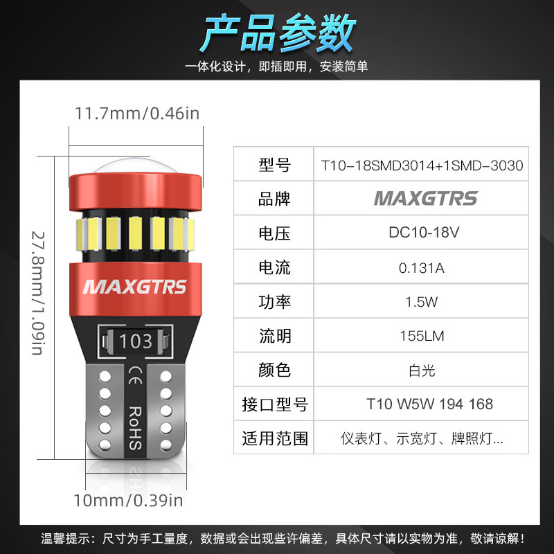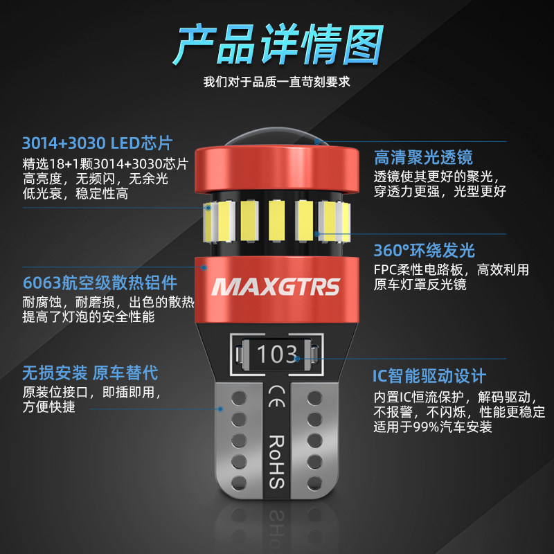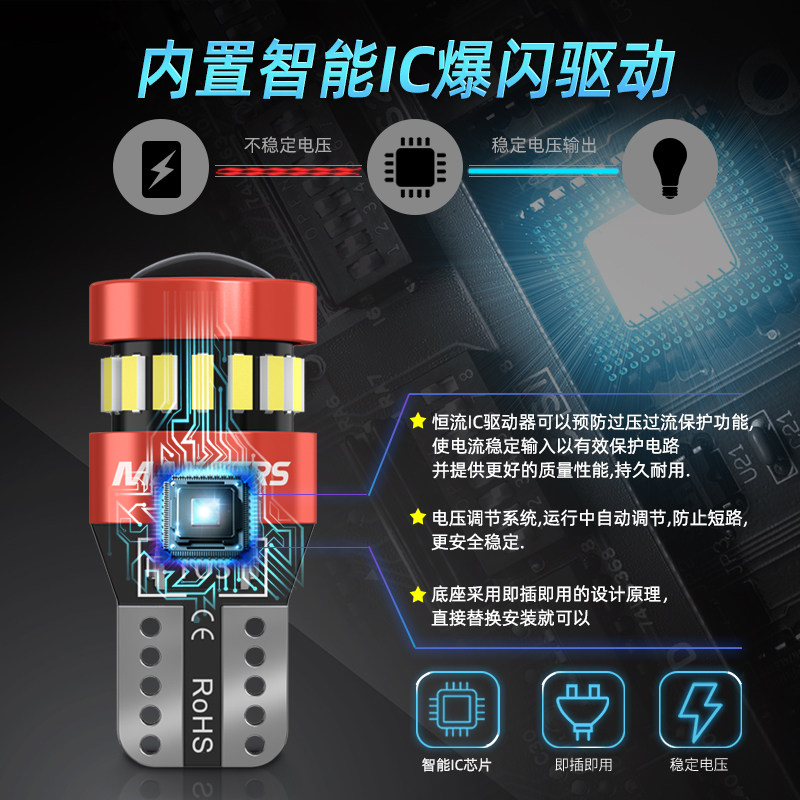 Черная мигающая широкая лампа Супер яркая светодиодная линза T10 Ice Blue W5W. Водообоснование световой модификации.