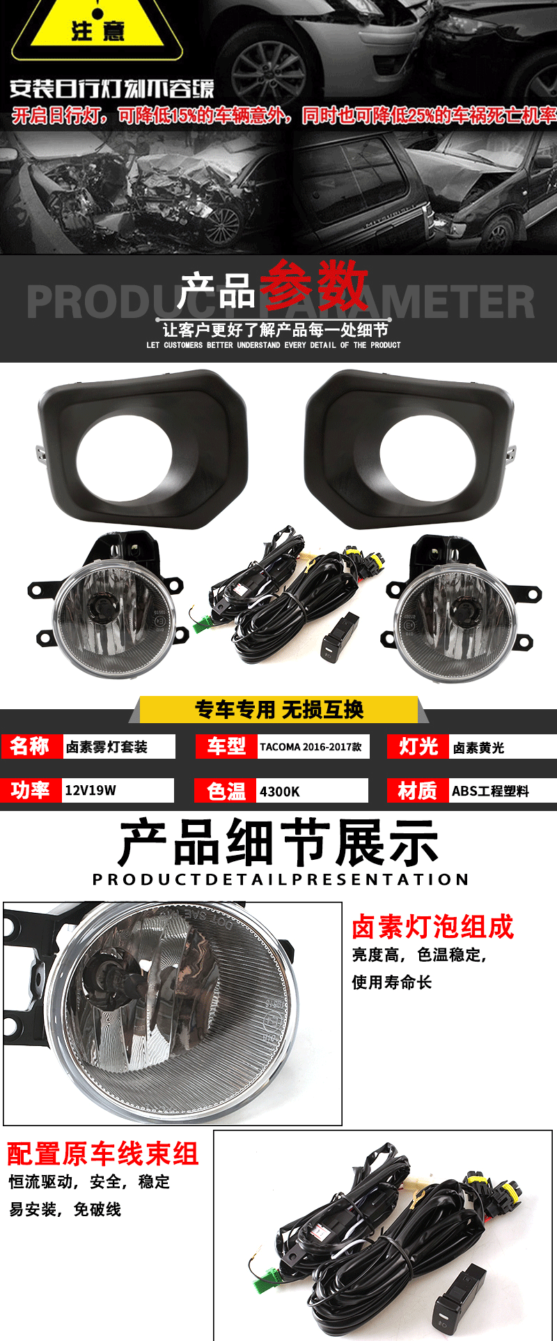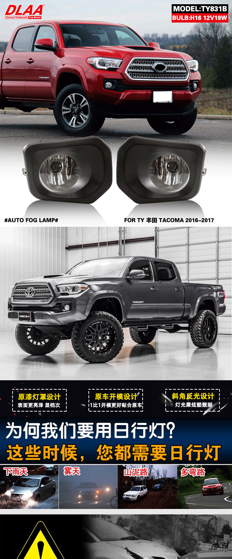 Подходит для Toyota16 17-летнего Tacoma Передние противотуманные фары Tacoma в сборе в пикапе дневные ходовые огни