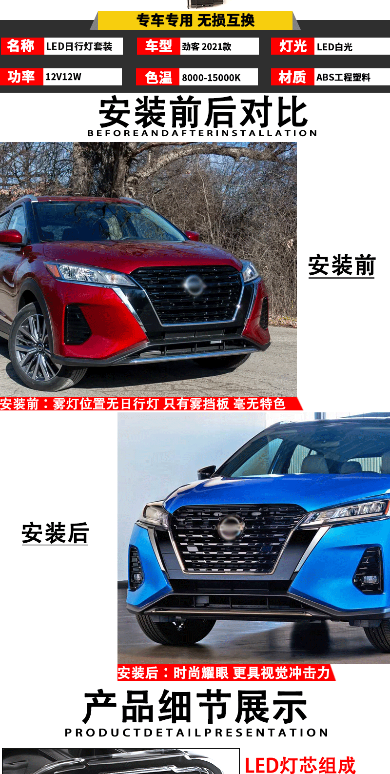 Применимый Nissan 2021 Новый Jinke/Kicks Передняя лампа с передним туманом светодиодные светодиод