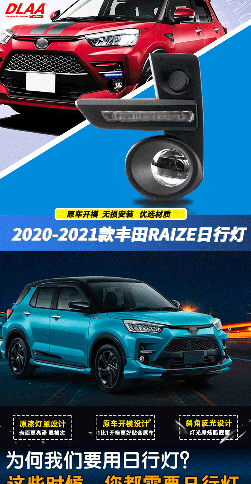 Применимо к Toyota 20/21 Новый Raize Front Fog Light Сборка светодиодного светодиода дневной ламп передней стержень передней стержень
