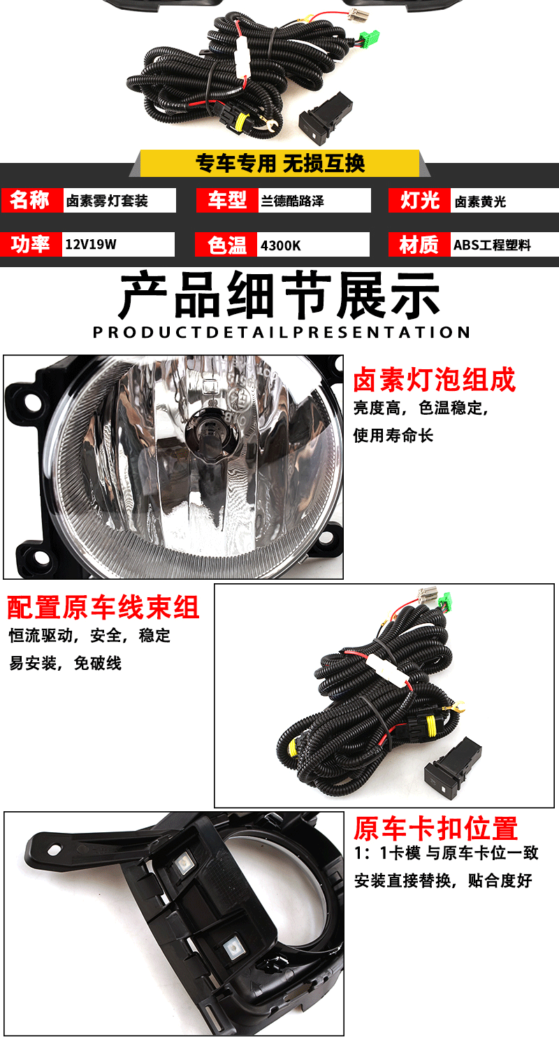 Подходит для Toyota Land Cruiser 12, 13, 14 и 15 лет в сборе с передними противотуманными фарами FJ200, дневными ходовыми огнями.