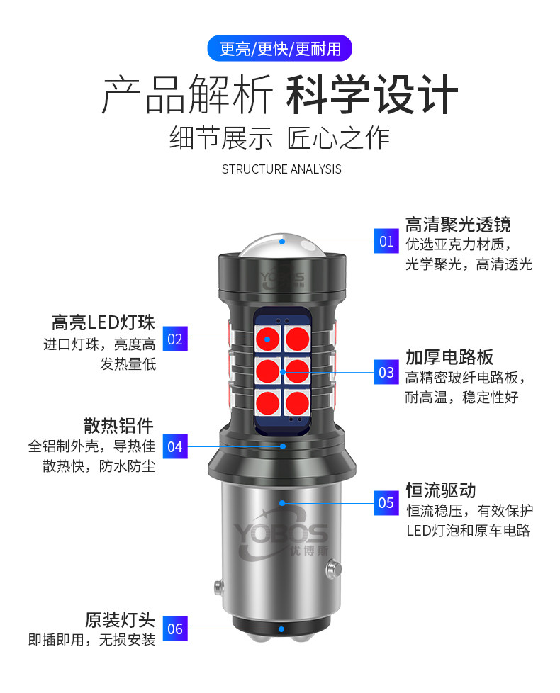 Светодиодные блестки для ногтей, тормоз, фары, модифицированная лампочка, P21, 4W