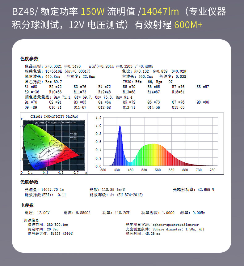 - BZ48#прямой белый свет 150 Вт (поддержка распределения в соответствии с моделью)