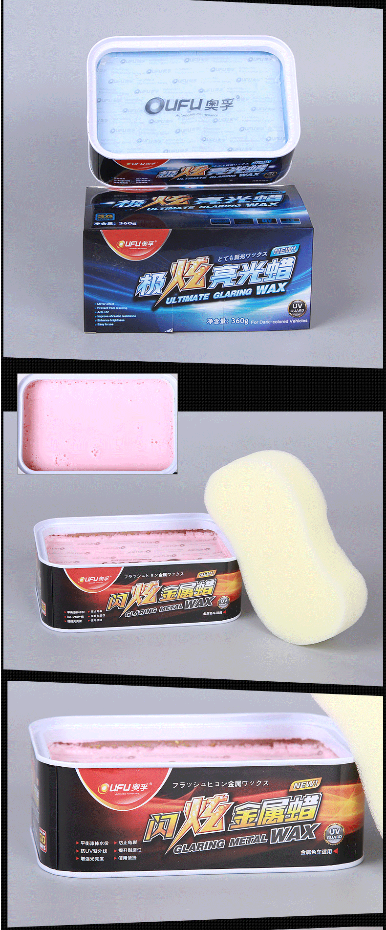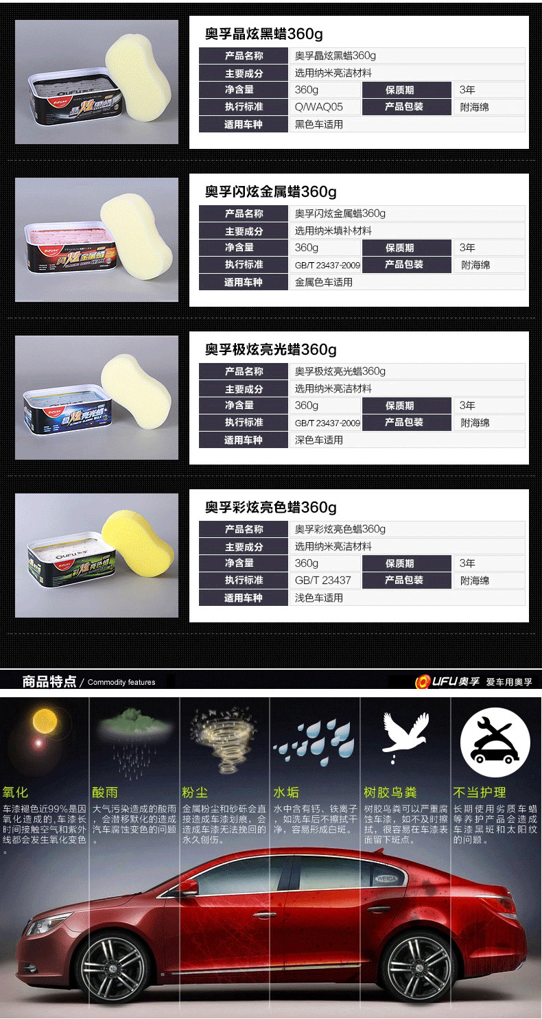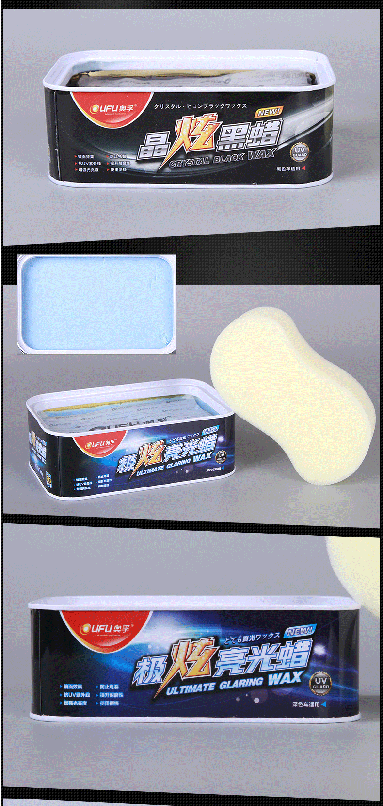 Новое улучшение AOFU -это ослепительное легкое восковое выражение.Эффект после строительства более длительный.Подходит для темных автомобилей.