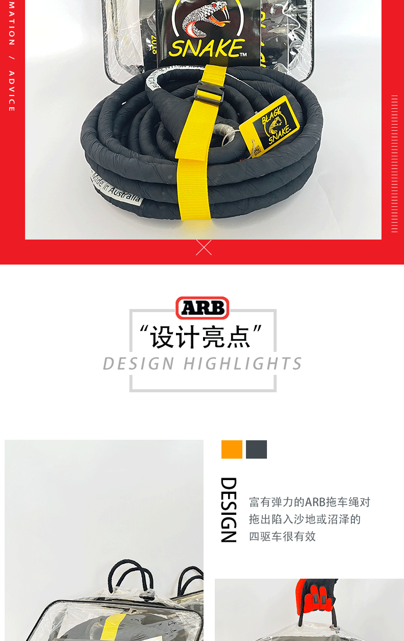 ARB Black Snake Elastic Rescue Rove Off -Hroad -Driving Rescue 10 -метра 8 -тонный трейлер с австралийским трейлером ARB веревка