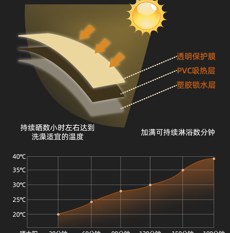 Вместительная и большая емкость для воды на солнечной энергии для кемпинга