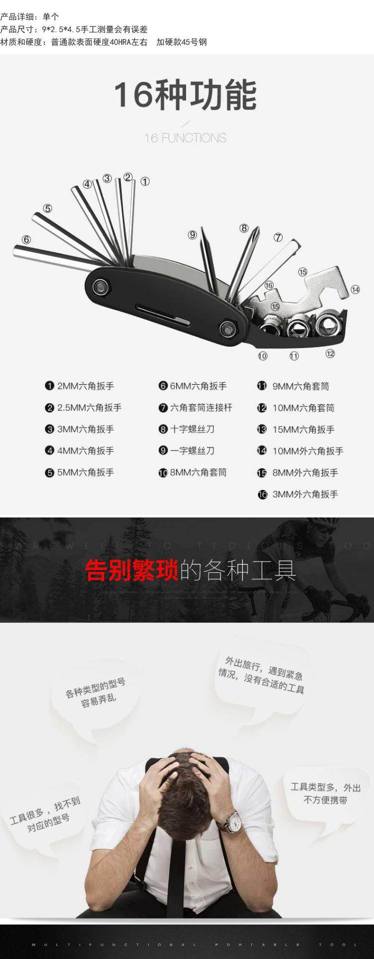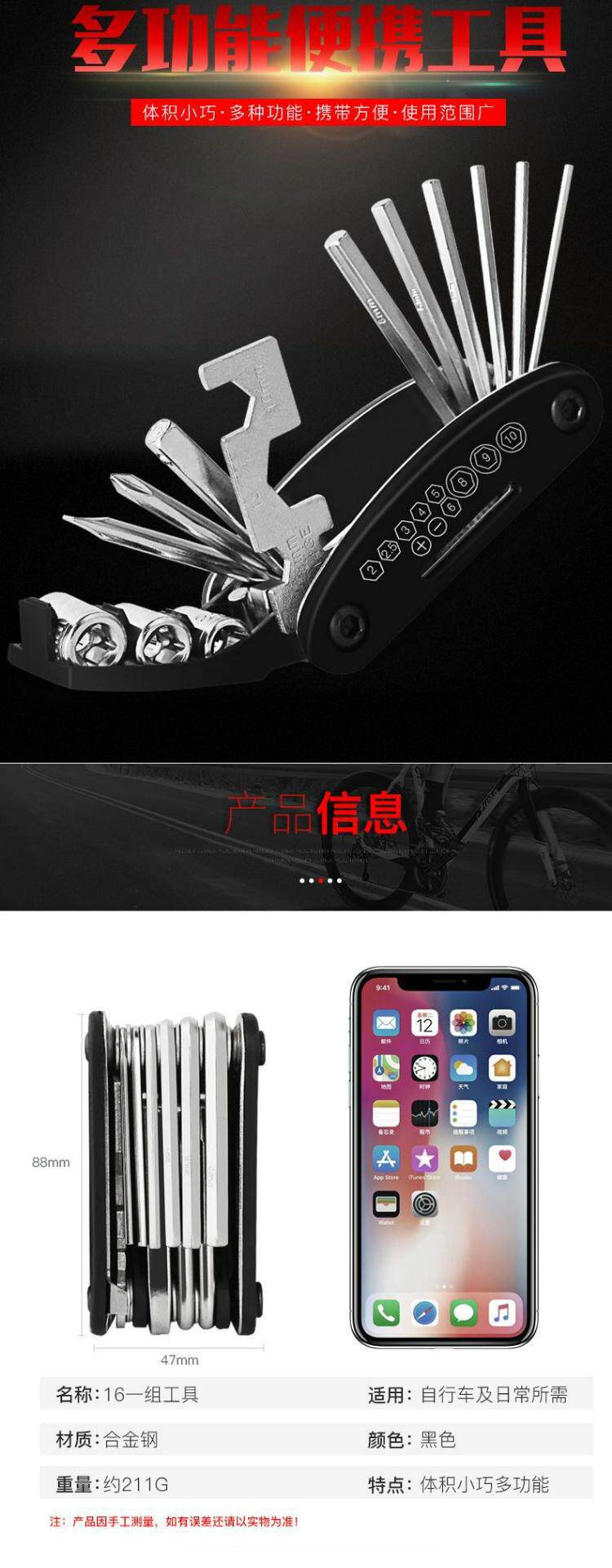 Универсальный горный велосипед, портативный складной набор инструментов, велосипедные спицы, гаечный ключ, шестиугольная отвертка с аксессуарами