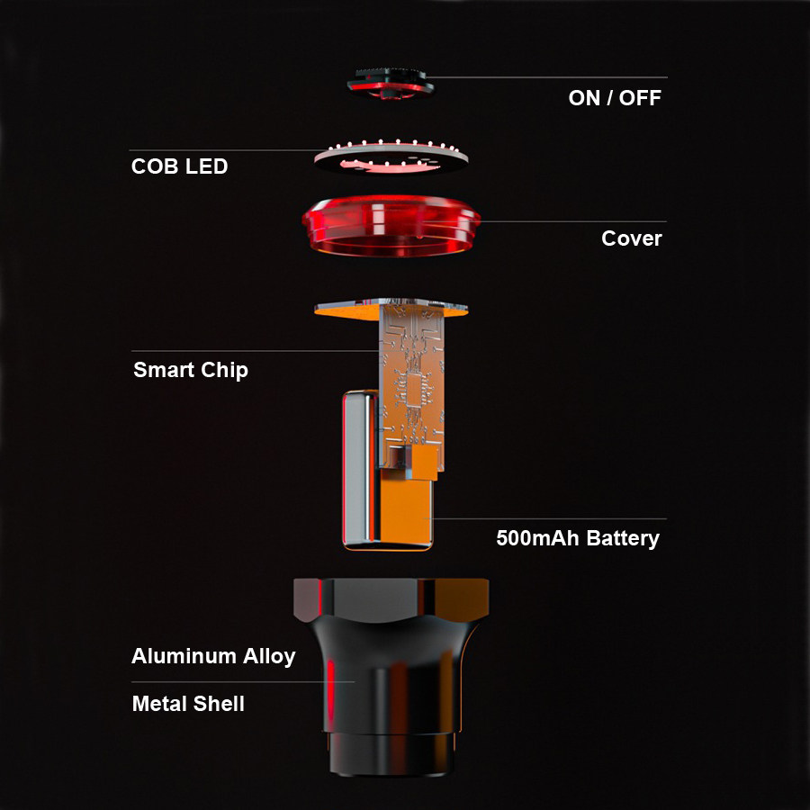 1. Аутско -индукционное устройство Braging Device2.automatic включите/выключение в зависимости от света и движения. 3. Автоматический переключатель для сохранения мощности.4. Установка трубки сиденья. .8.USB Зарядка.9.compact and Light Weey Design.10.ipx6 Водопрофильное.