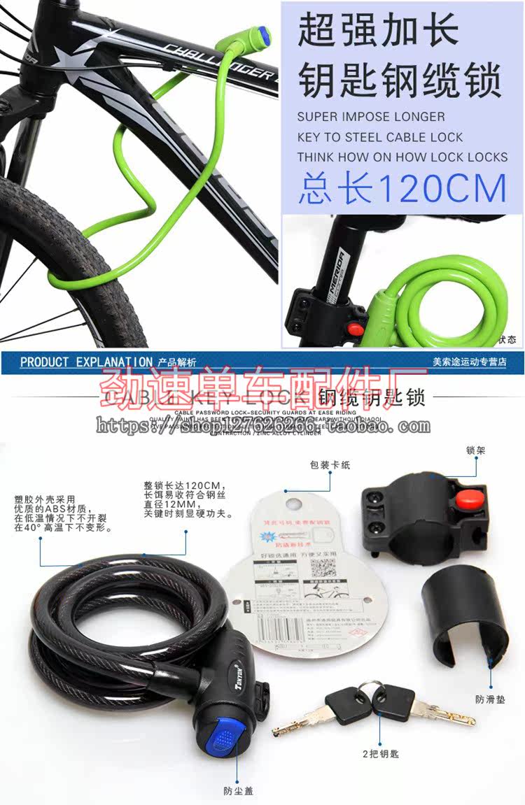 Замок, велосипед, горная стальная проволка, анти-кража