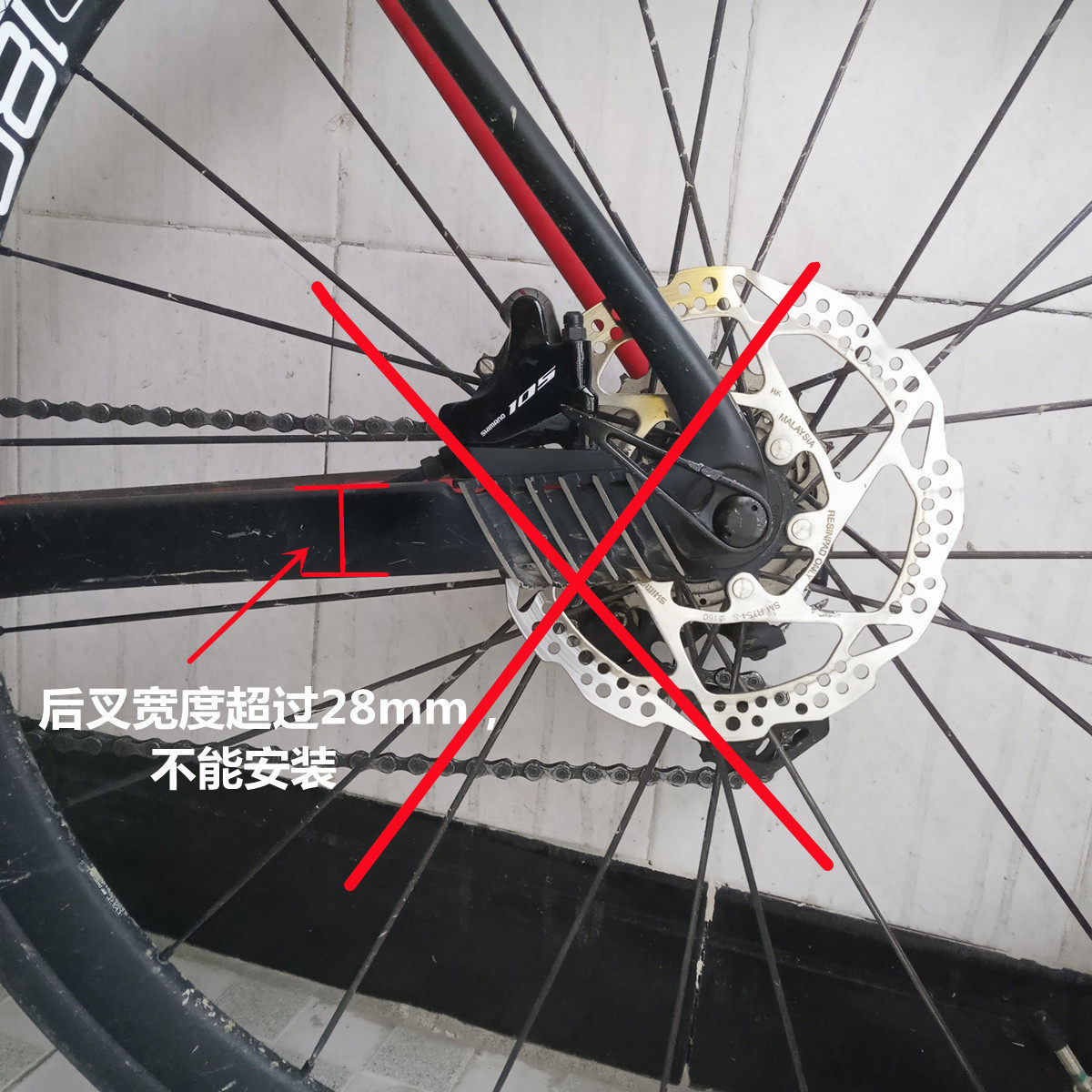 2. Ширина задней вилки составляет более 28 мм, и ее нельзя использовать