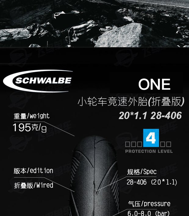 Шивен Швальбе Один 20*1,1 406 20 -INCH Складная велосипеда Внешняя шина KBC083 Легкая шина