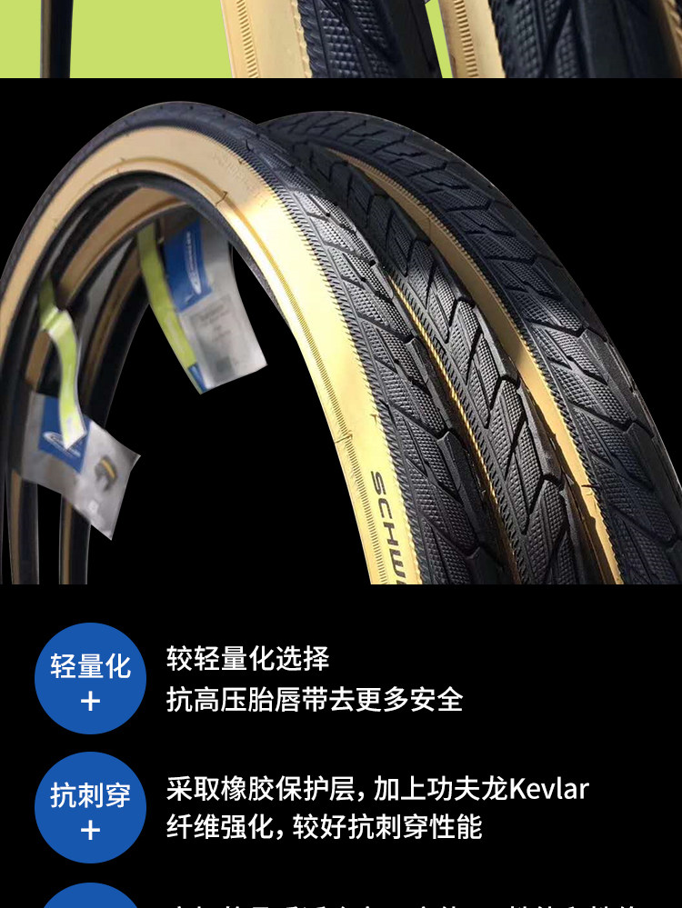 Шивен Швальбе 26*1,75 700*35C Желтая граница шина 26 -INCH Mountain Bicycle Tire Retro Tire