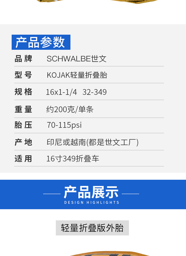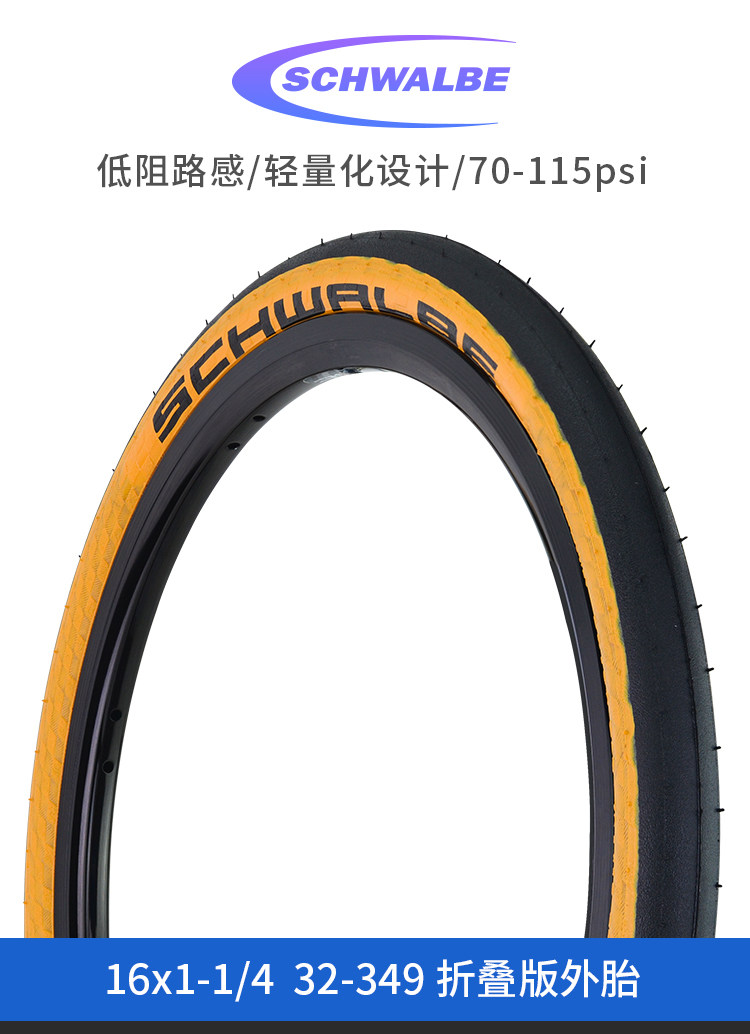 Шивен Швальбе Коджак Складывающее издание Сяобу ретро желтая пограничная шина 16 -дюймовая 349 анти -tire