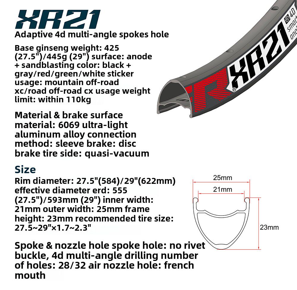 Kuze XR21 Горный велосипедный обод вспомогательный вакуумный ободок 28 32H Ultra Light 420G 27,5 29