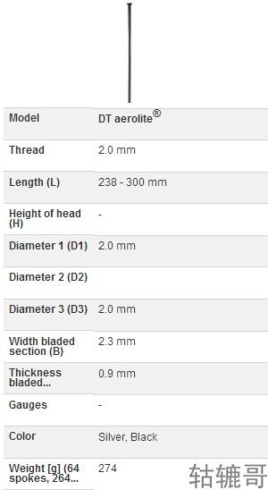 DT Aerolite Straight Pright Head Flat Spoke Black 262 ~ 266 273 ~ 294 мм