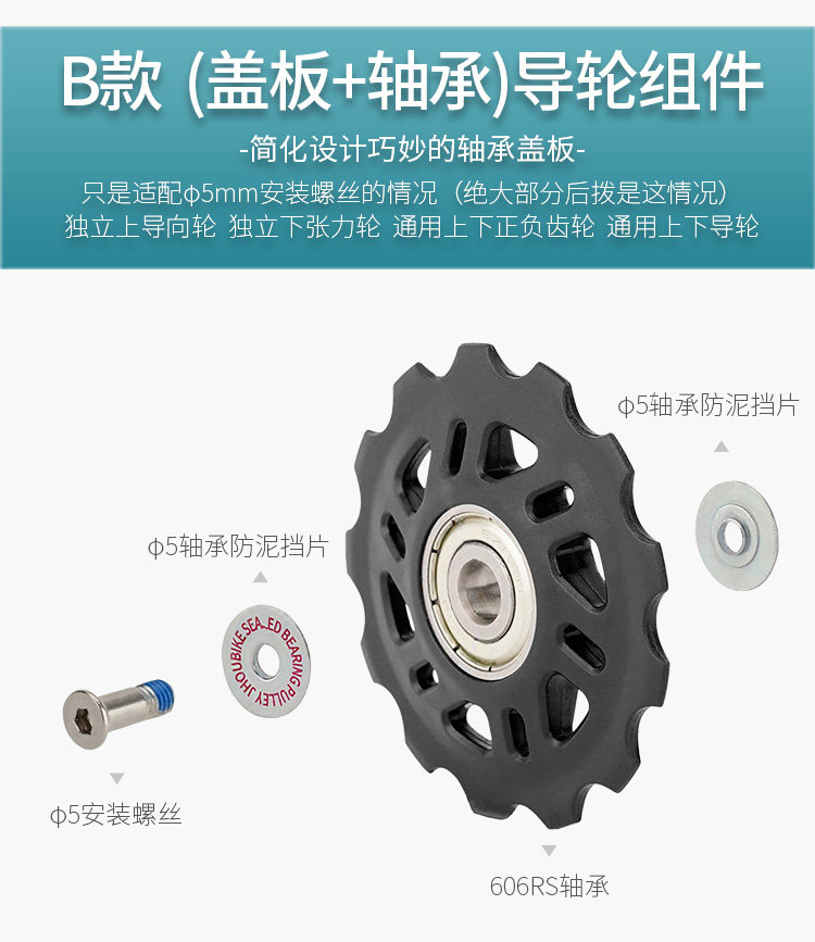 - Модель B (крышка пластины+подшипники) Универсальное руководство колесо 12T