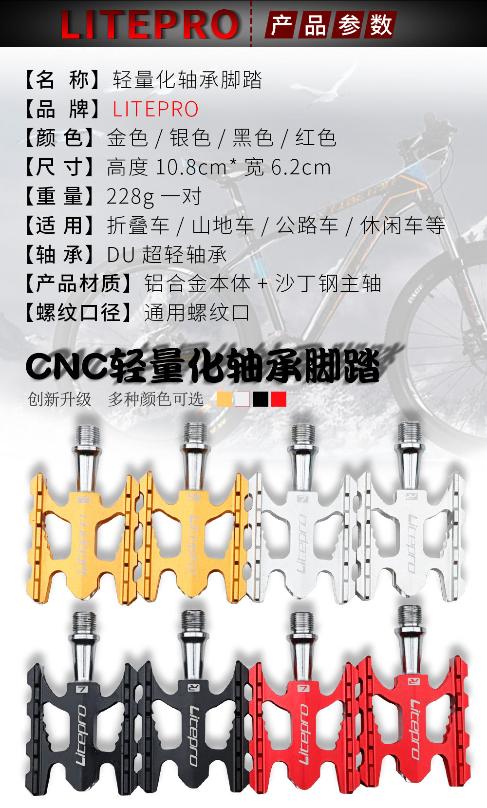 Сверхлегкий складной велосипед, легкая педаль, металлическая велосипедная каретка, подшипник, алюминиевый сплав