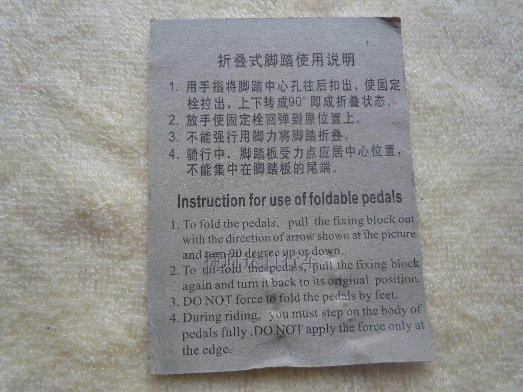 1. Потяните педаль алюминиевого сплава с помощью рук, чтобы обнажить фиксированный болт, переверните его вверх и вниз до 90&Град; это складываетсясостояние.