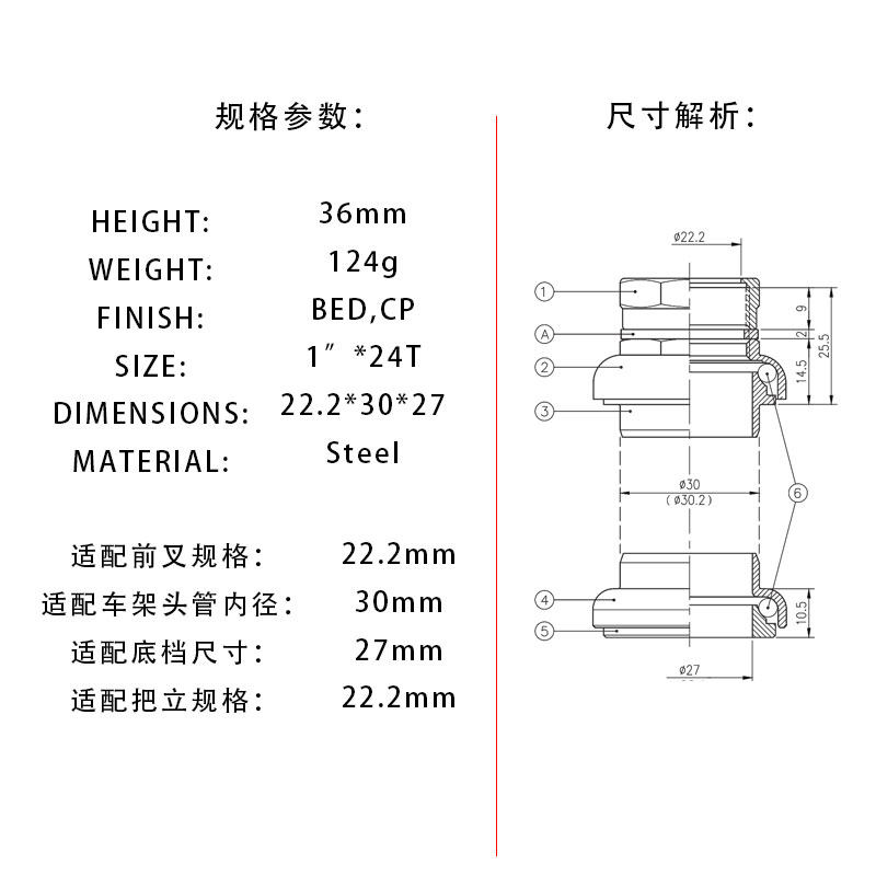 Велосипед, велосипедная рулевая колонка, велосипедная вилка, 22.2mm, 1 дюймов, 27mm