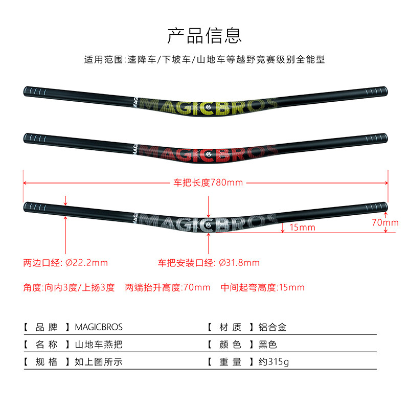 Горный велосипед, горный руль, внедорожный руль-бабочка, алюминиевый сплав, 780mm